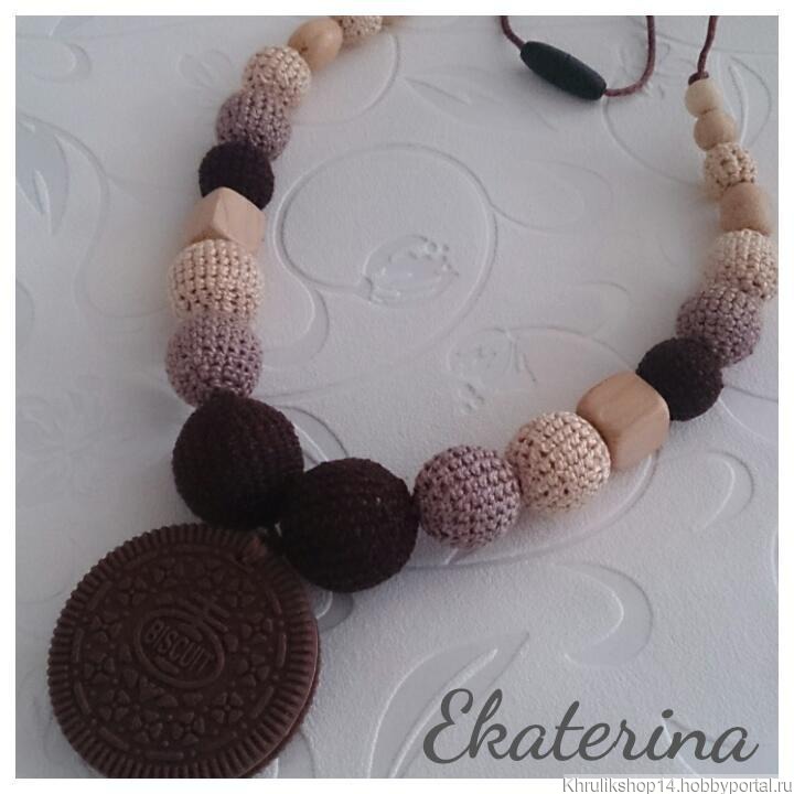 Слингобусы из можжевеловых бусин с грызунком Печенье.