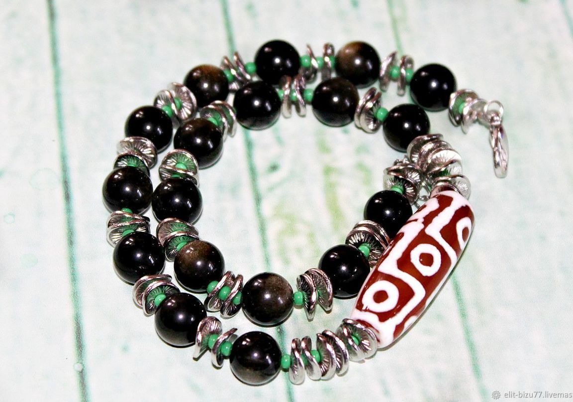 коричневый, агат, чокер, унисекс, амулет, обсидиан, редкий камень, дзи, мистический талисман, золотистый обсидиан, амулет богатства, 9 глаз
