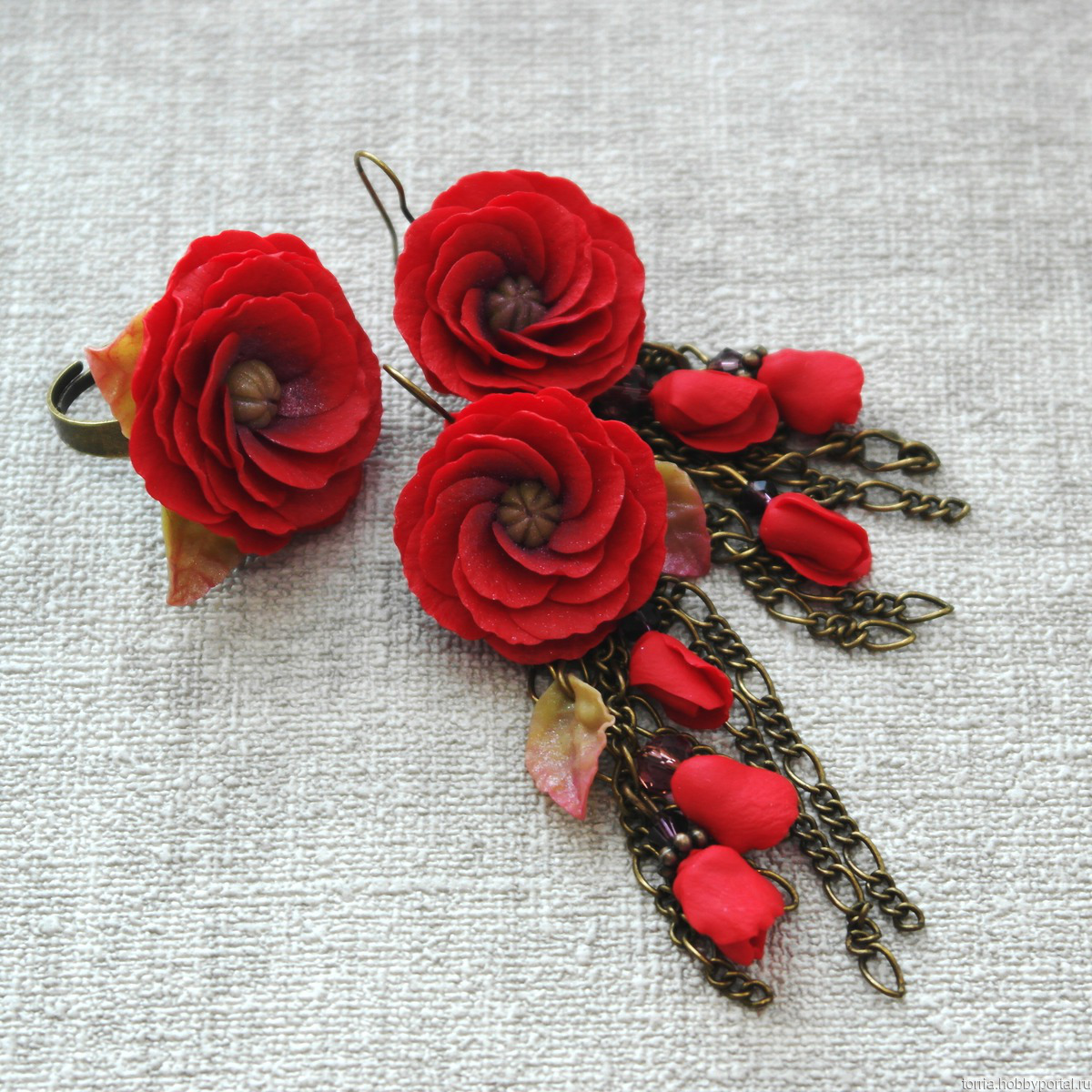 Серьги, кулон, колье, кольцо с цветочной композицией или отдельными цветами.