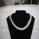 Оригинальный плоский жгут из чешского стекла под "жемчуг" оплетен ювелирным золотым бисером и маленькими жемчужинами