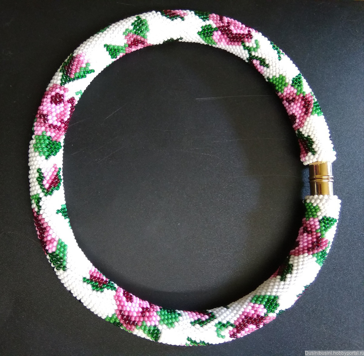 цветы, розы, жгут из бисера, жгут вязанный из бисера, ожерелье из бисера