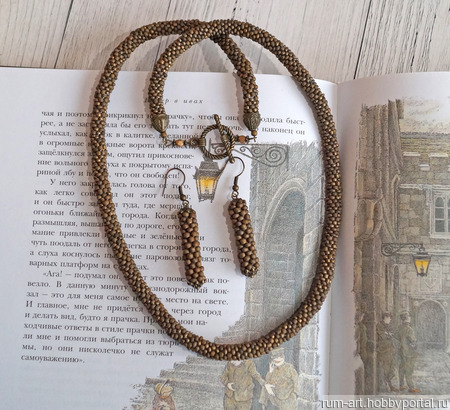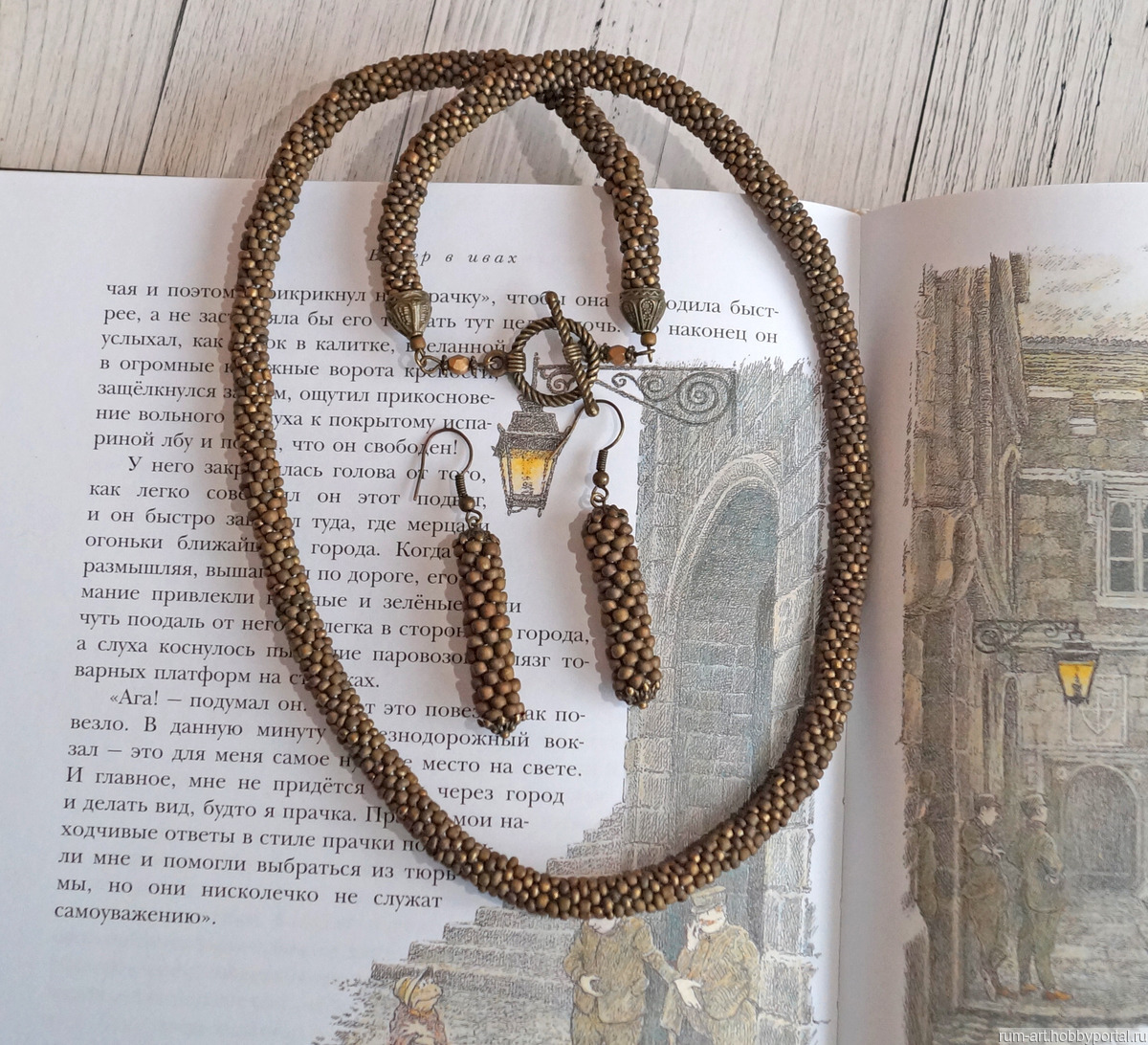 Жгут украшение на шею "Старый город" из бисера цвета бронза выполнены в технике вязания с бисером. Каждая бисеринка провязывается отдельно.