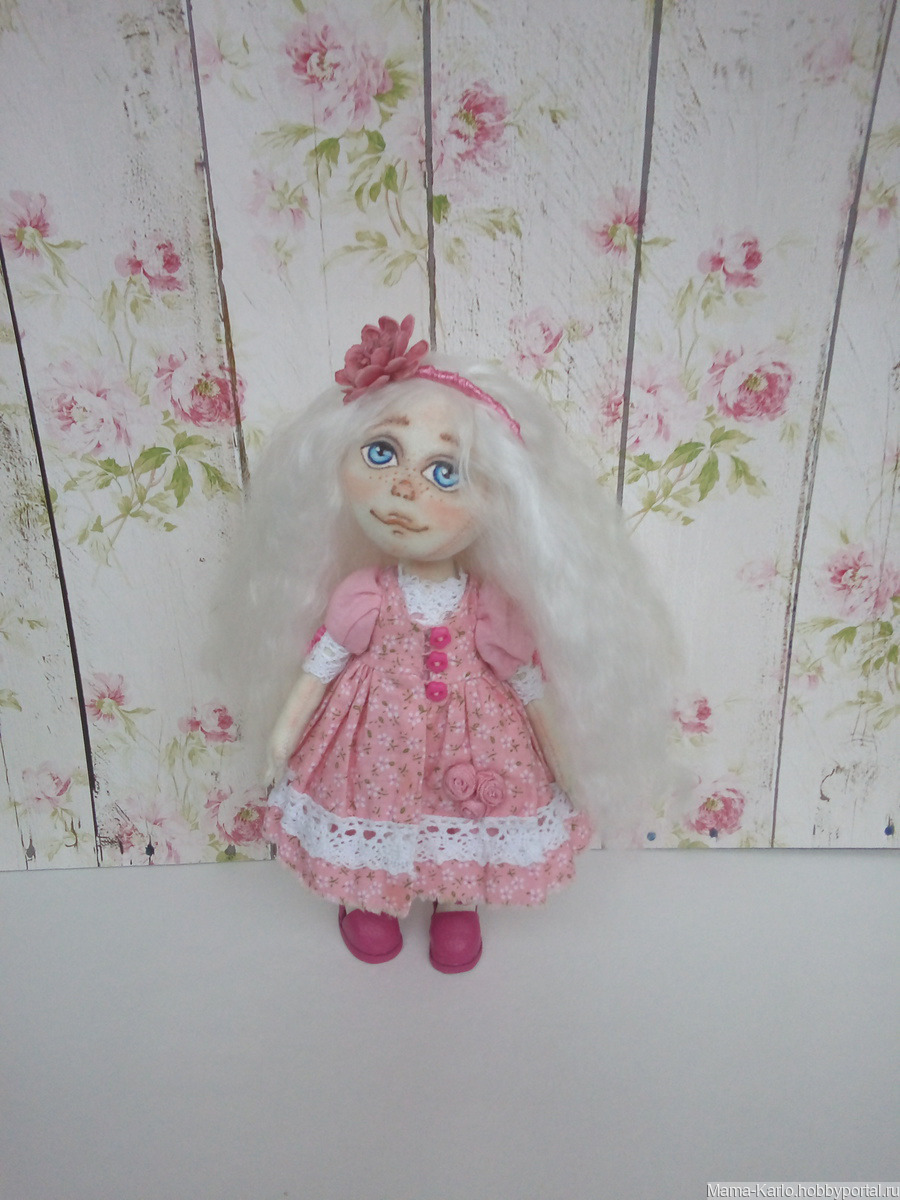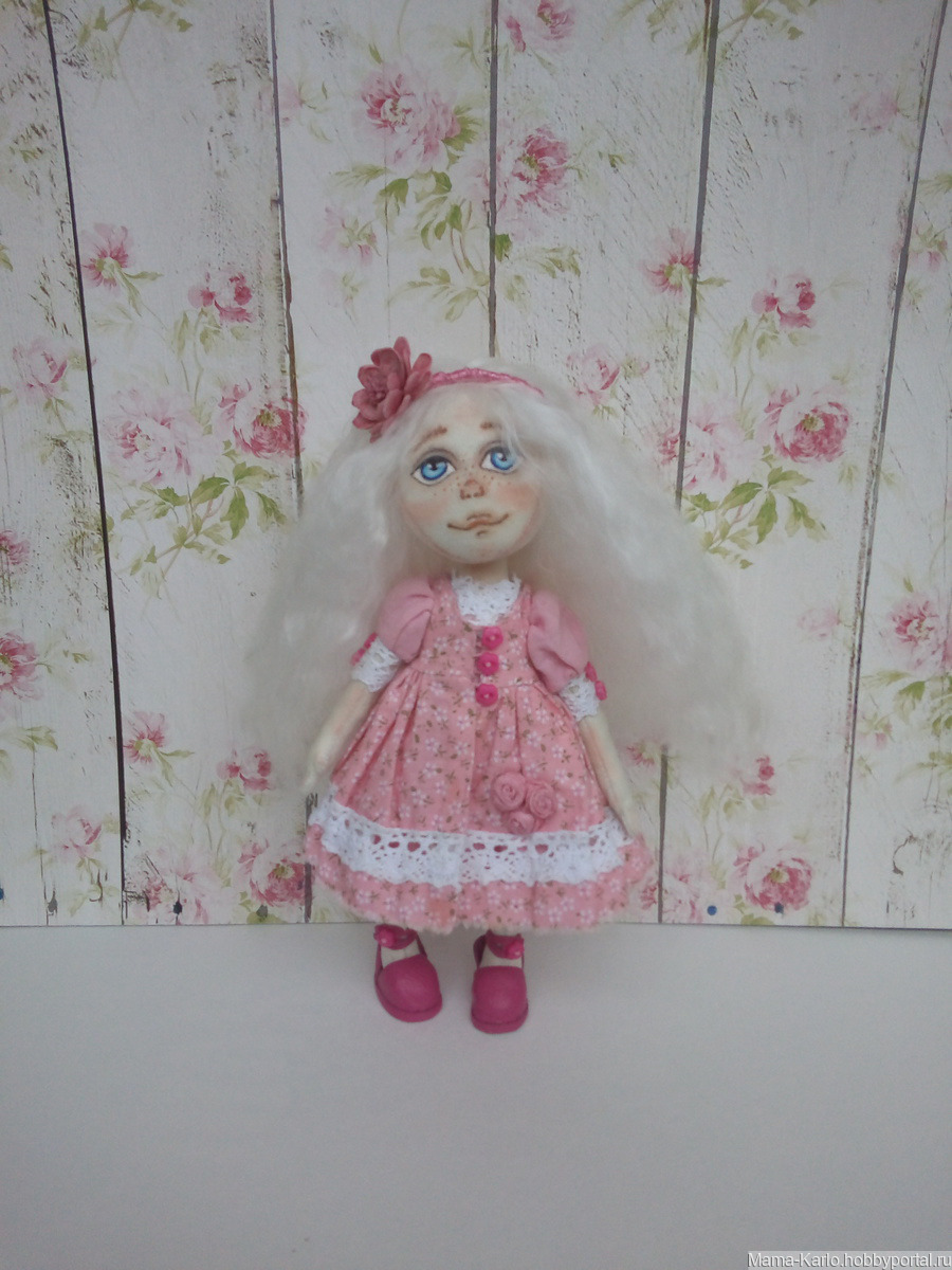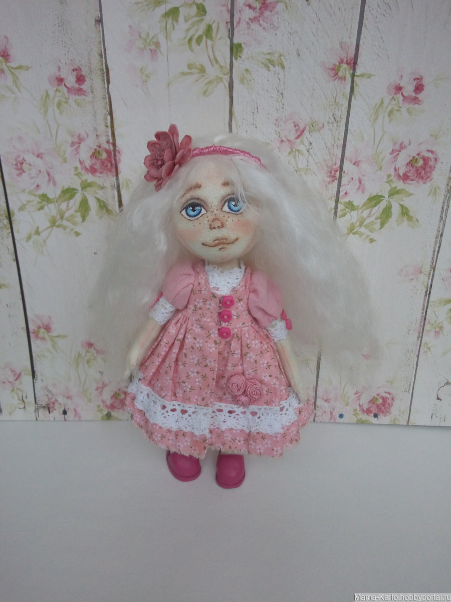 Алёнка-это девочка-воспоминание о прошедшем лете...Немножко грустная,ведь лето прошло...Ростик 22см,шикарные белые волосы и очаровательное розовое платьишко...Девочка дом нашла,но могу сшить очень похожую))
