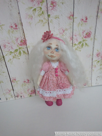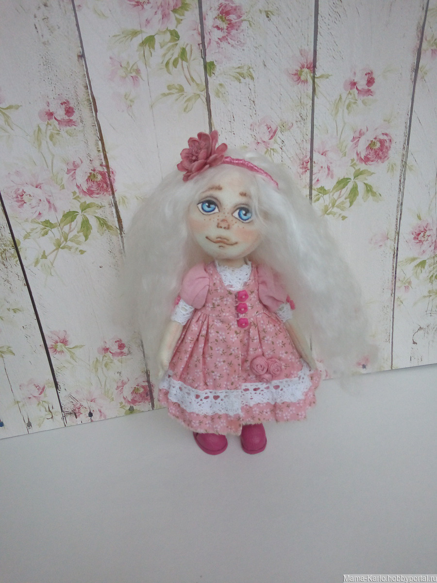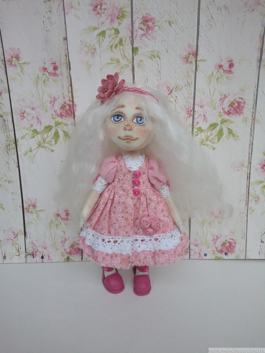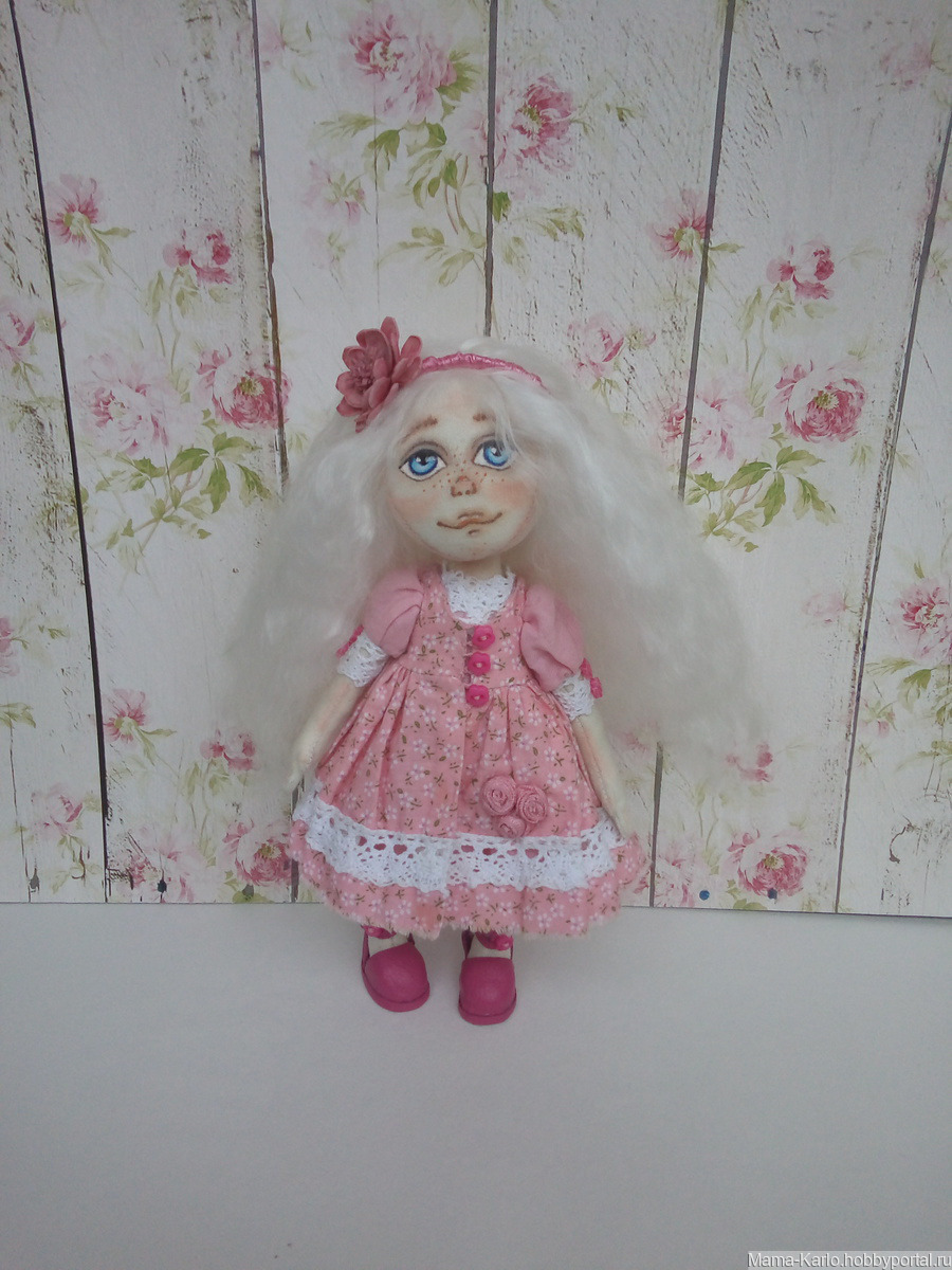 Алёнка-это девочка-воспоминание о прошедшем лете...Немножко грустная,ведь лето прошло...Ростик 22см,шикарные белые волосы и очаровательное розовое платьишко...Девочка дом нашла,но могу сшить очень похожую))