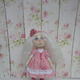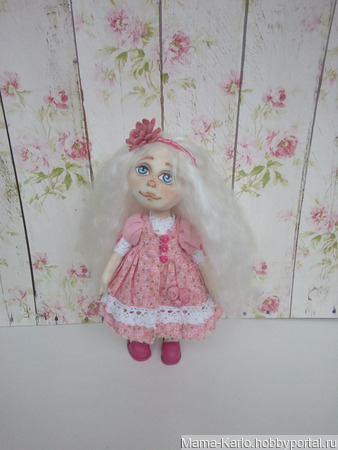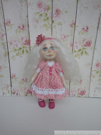 ободок, розовый, кукла ручной работы, кукла текстильная, кукла интерьерная, голубые глаза, розовое платье, шебби лента