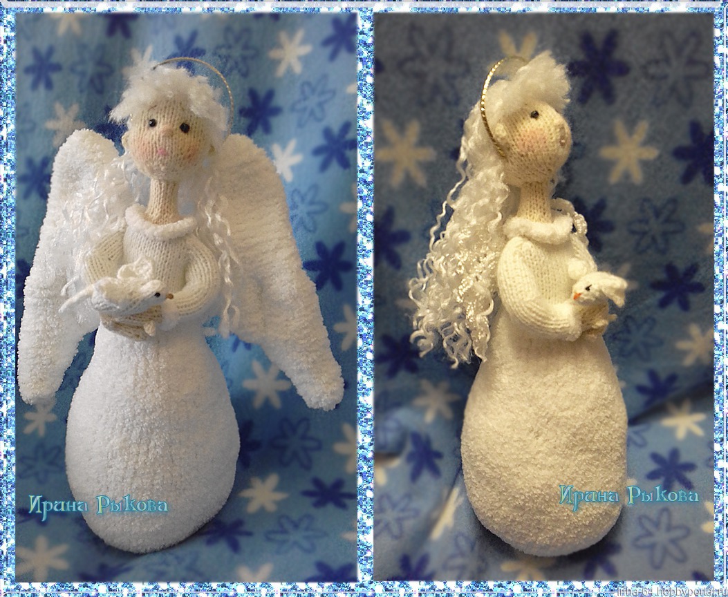 Ангел вяжется на спицах,частично из пряжи Ализе Софти (турция),часть-акрил.Наполнитель-синтепон.В основе вязания-МК от Алана Дарта.