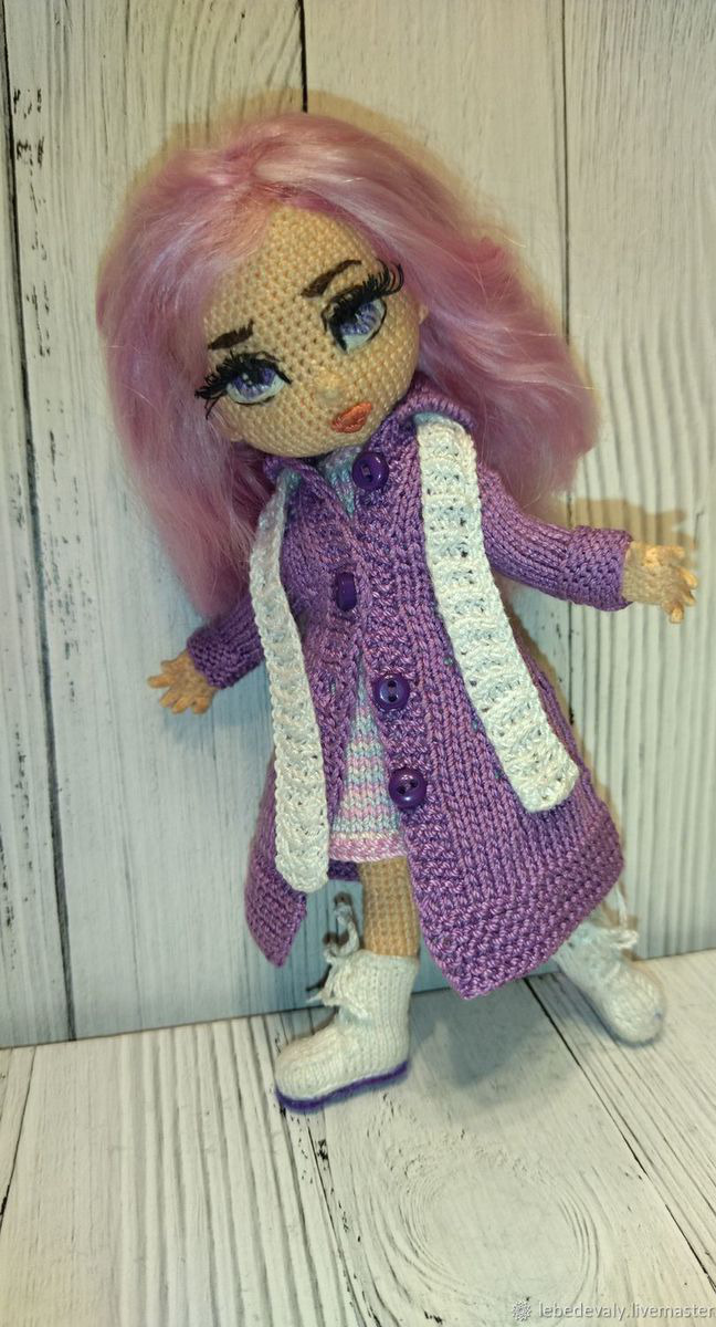 Эльза.. Вязаная куколка на проволочном каркасе. Личико вышито. Волосы - натуральная козочка.
