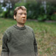 Джинсы ,как и свитер, сшиты вручную с имитацией основных джинсовых швов, выделены и тонированы естественные складки , вытянута область колен.