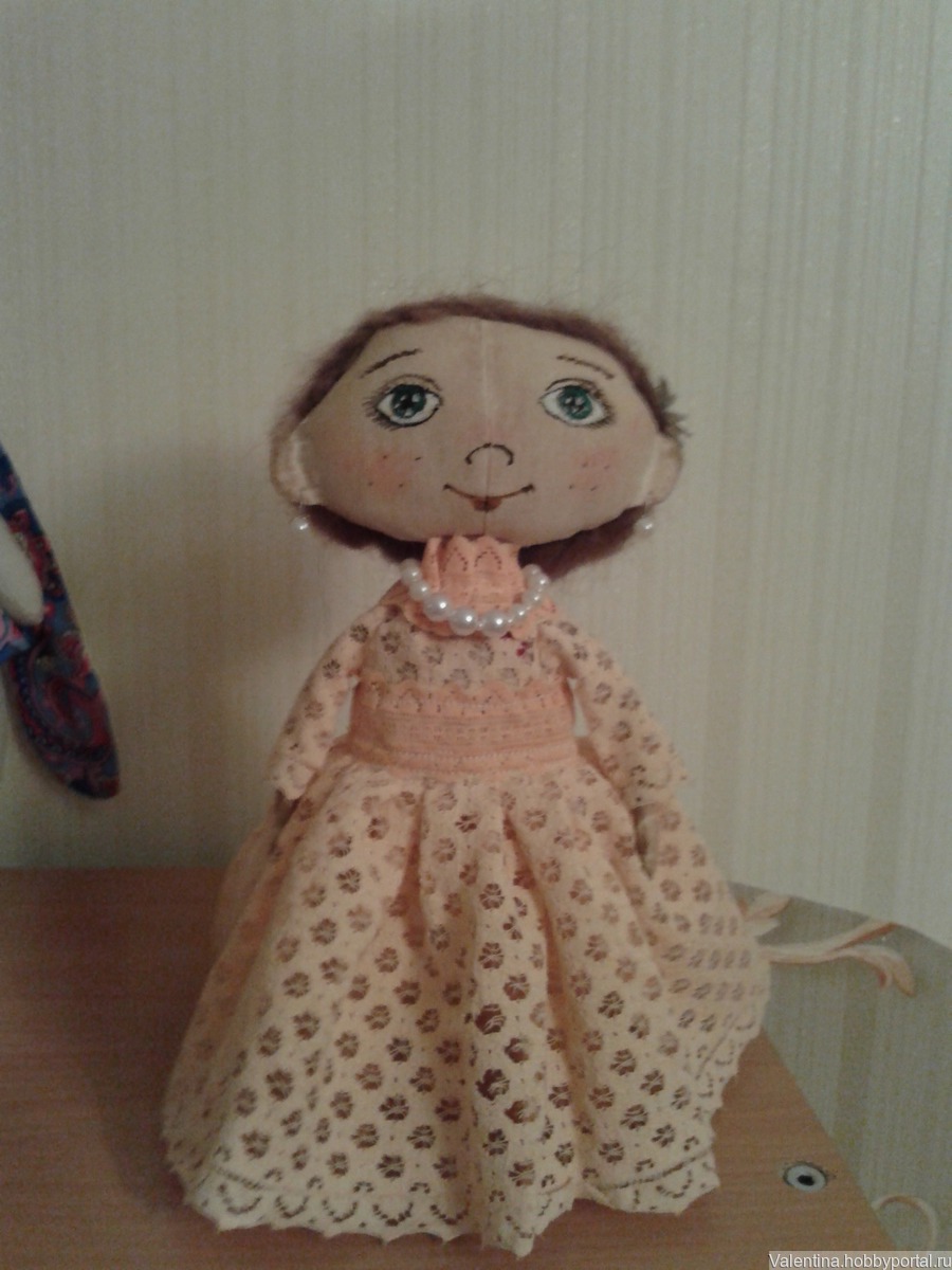 Кукла Аня выполнена в стиле грунтованный текстиль, съемная одежда, самостоятельно стоит