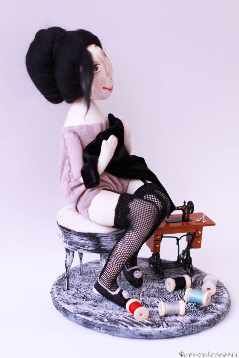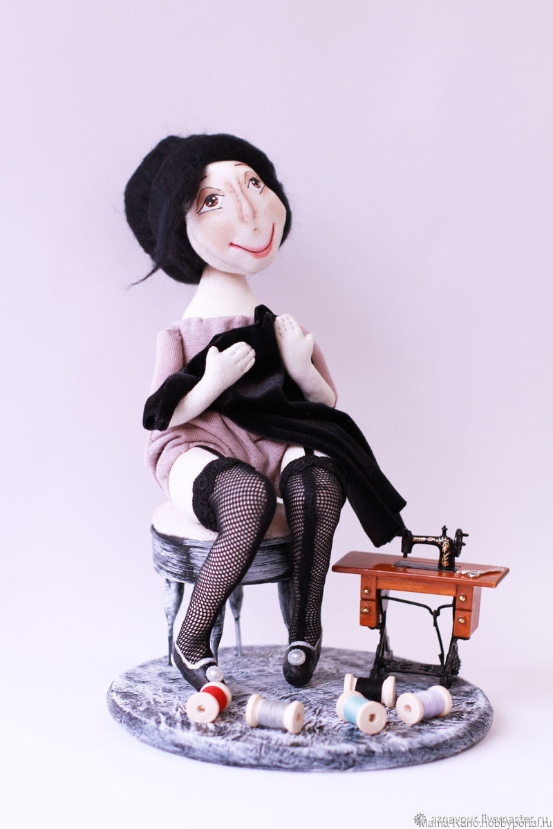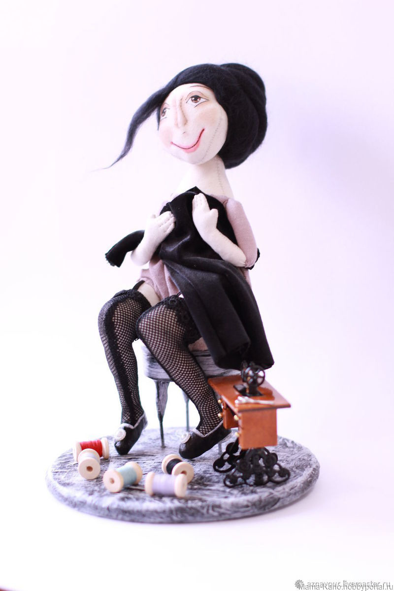 платье, кукла ручной работы, кукла из ткани, кукла текстильная, кукла интерьерная, кукла в подарок, мечта, мечтательница, швейная машинка, ножницы, франция, париж, чулки, маленькое платье, коко шанель, маленькое черное платье, мадам
