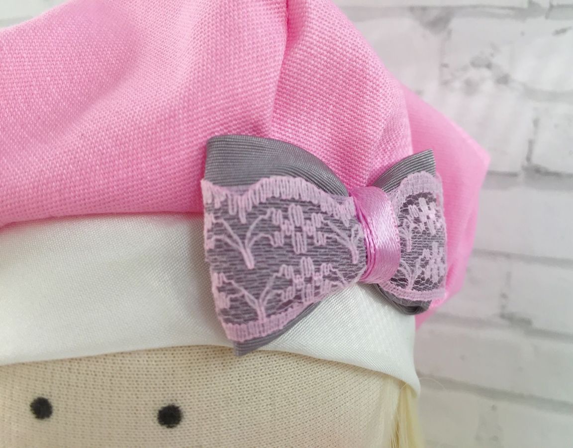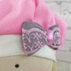 Выполнена кукла в нежной серо-розовой гамме, на ногах - модные кеды. Одета в розовые джинсы и серый элегантный плащ с кружевом. На голове- берет в розовом цвете. Одежда не снимается. К кукле прилагается металлический чемодан, который может служить шкатулкой (открывается).