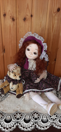 Волосы натуральные, голова поворачивается, ручки и ножки шарнирные. Одежда снимается.