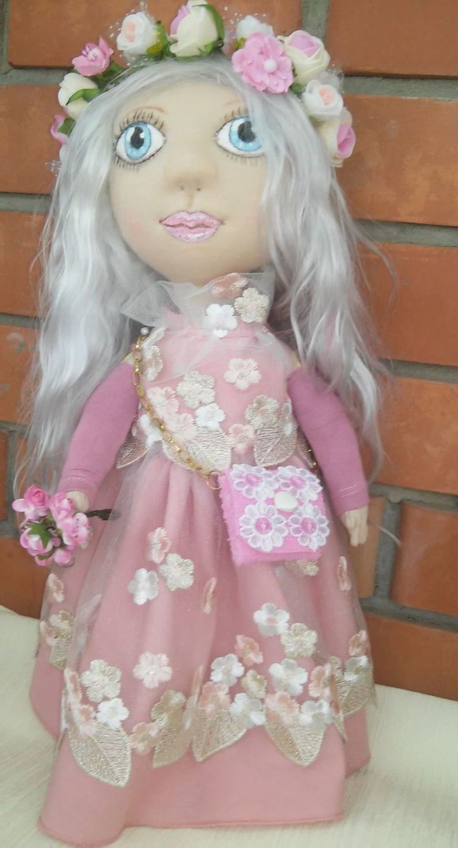 текстильная кукла, авторская кукла, кукла ручной работы, бледно-розовый, кукла в подарок