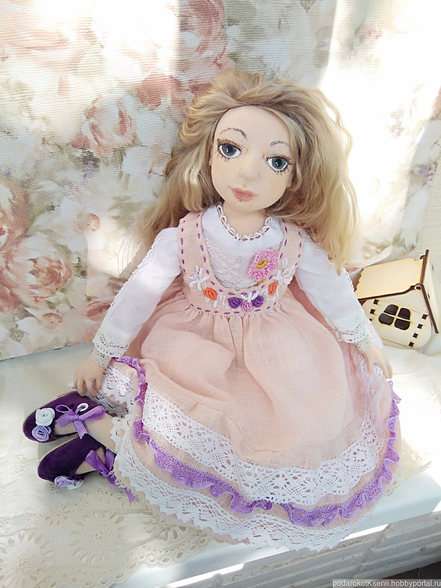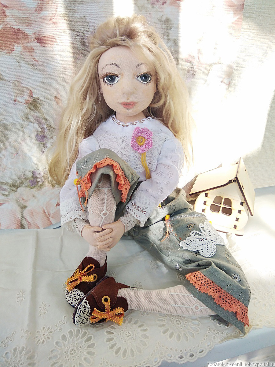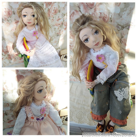Мари - полностью ручной работы девочка. Куколка в единственном экземпляре, сделана с большой любовью. Техника пошива - скульптурный текстиль, сшита из хлопка, обтянута трикотажем "Белый ангел". Рост около 60 см. Куколка не игровая, для души, может украсить любую коллекцию или просто стать доброй подружкой. Ее можно красиво усадить, ручки и ножки подвижны, безопасно армированы, на пуговичном креплении.