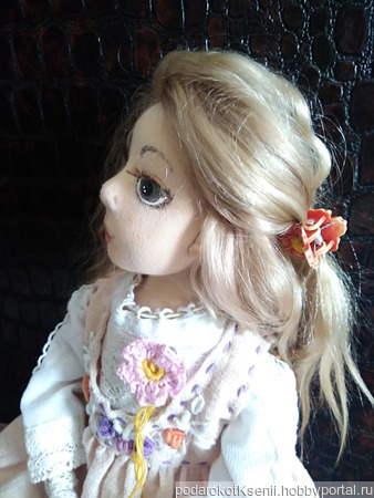 Волосы – локоны козочки, очень мягкие и нежные, можно аккуратно расчесывать, плести косы или делать несложные прически.