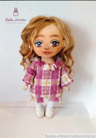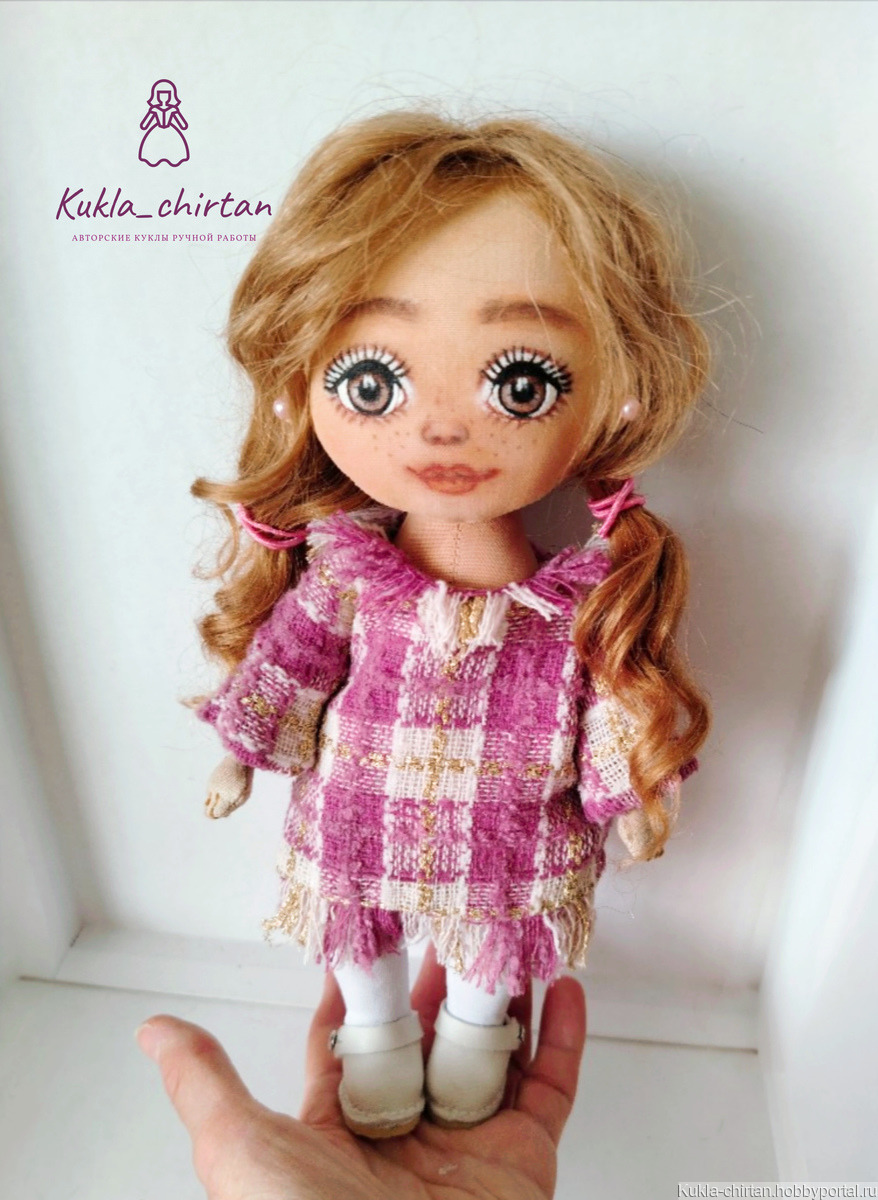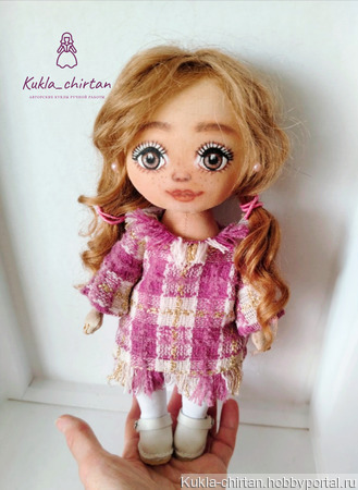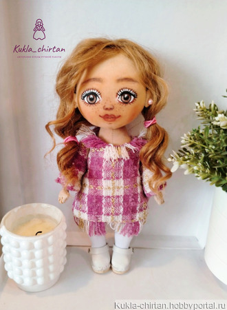 Милая, уютная куколка полностью ручной работы,включая одежду и обувь. .Может самостоятельно стоять и сидеть.Куклу очень приятно брать в руки.Дарит массу положительных эмоций и снимает стресс.