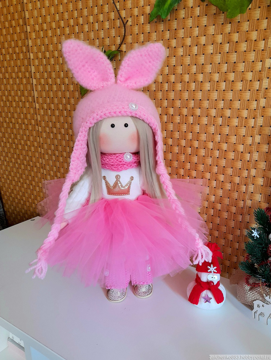 Куколка зайка. Одежда снимается, можно расчёсывать.