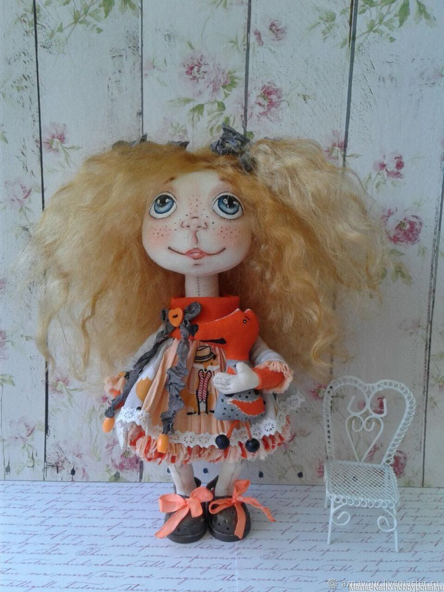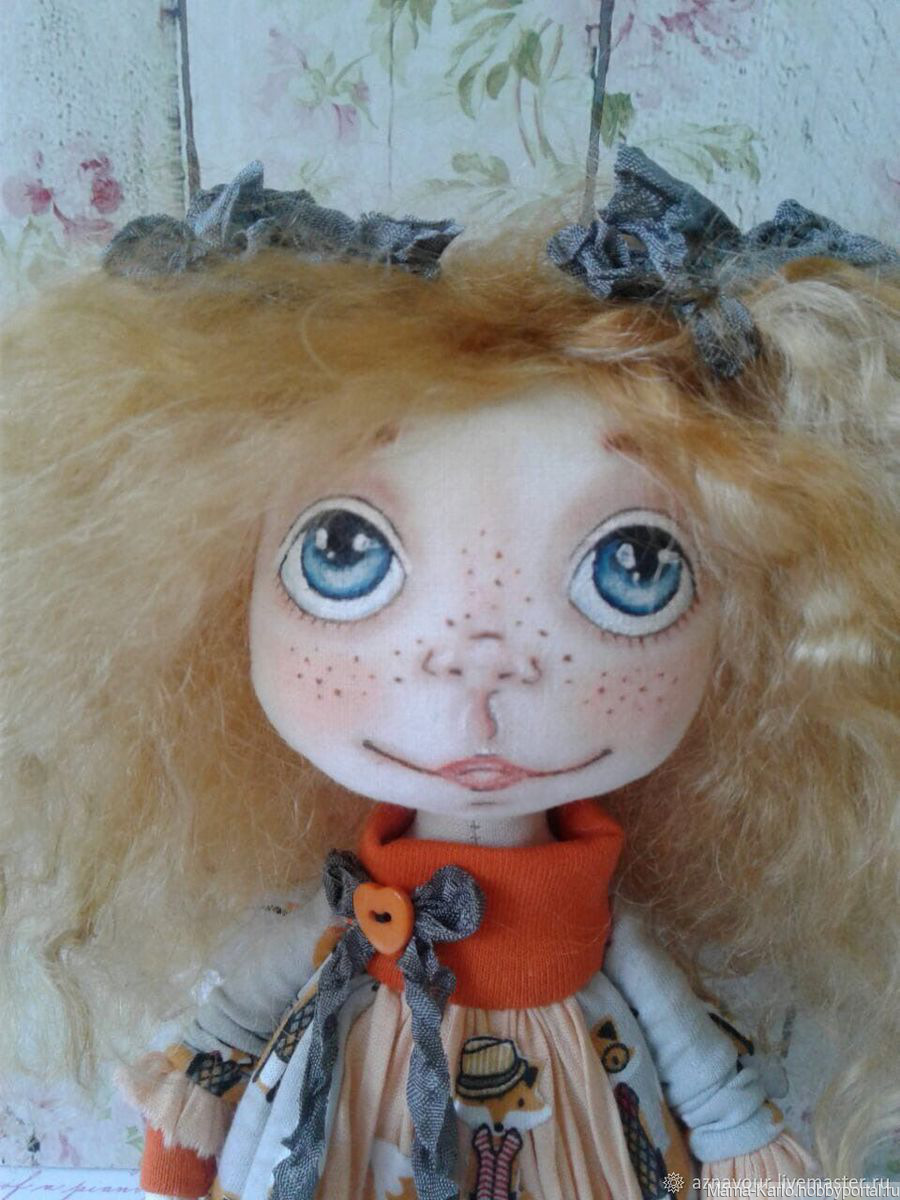 лиса, лисичка, рыжий, кукла текстильная, кукла интерьерная, кукла в подарок, голубые глаза, шебби ленты, малышка, лисенок, шебби стиль, шебби, Маленькая куколка, маленькая девочка, веснушки