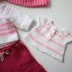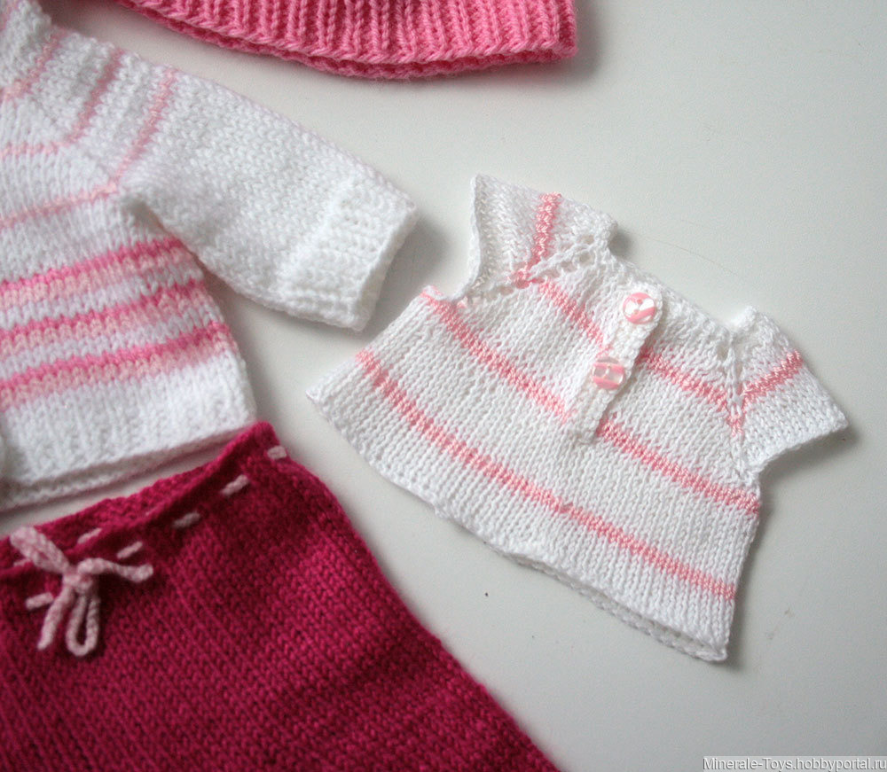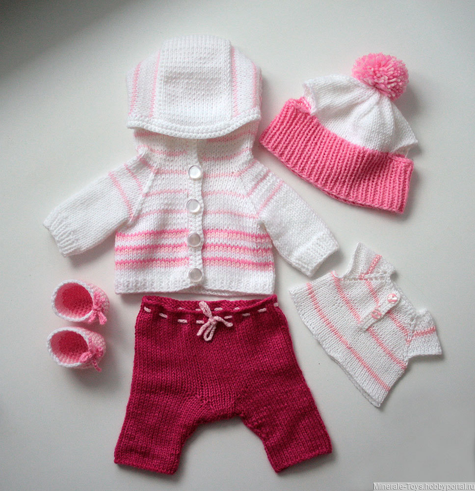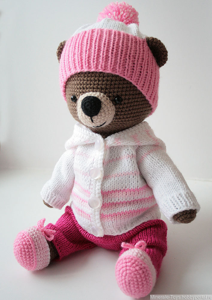 Продам мишку в одежде. Сам мишка связан из детского акрила, наполнитель - холлофайбер. Ручки и ножки подвижны: на нитяном креплении, сделанном с помощью деревянных пуговиц. Глазки безопасные. Футболочка связана из кружевной пряжи, брюки, кофточка, шапочка и ботиночки - из акриловой пряжи. Цвет комбинированный: белый, розовый, малиновый. Вся одежда снимается. Возможны другие цвета на Ваш выбор.