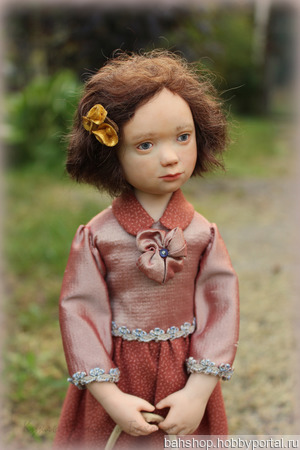 Кукла выполнена из полимерной глины Living doll и нетканого материала, имеет проволочный каркас в теле и конечностях.