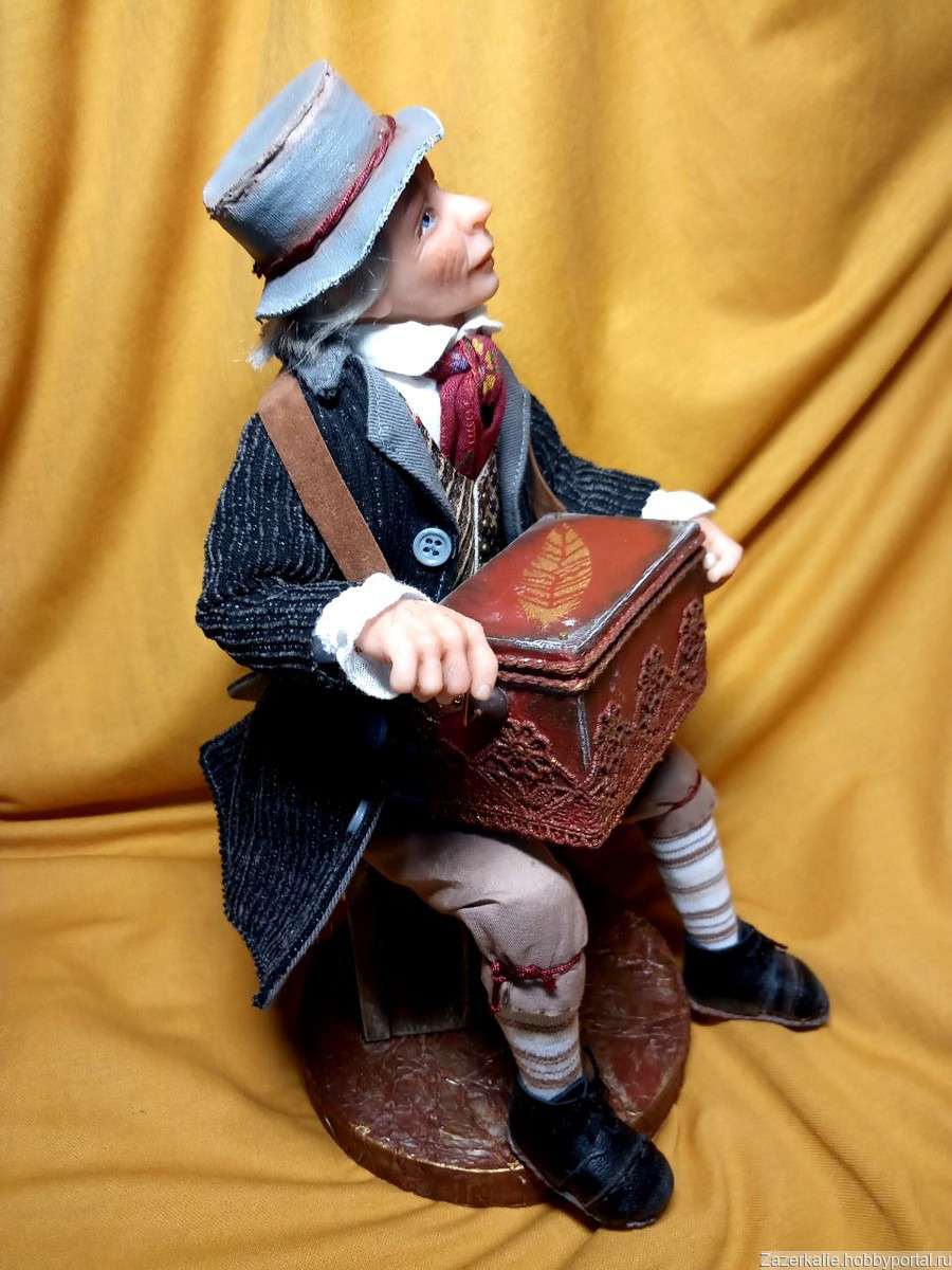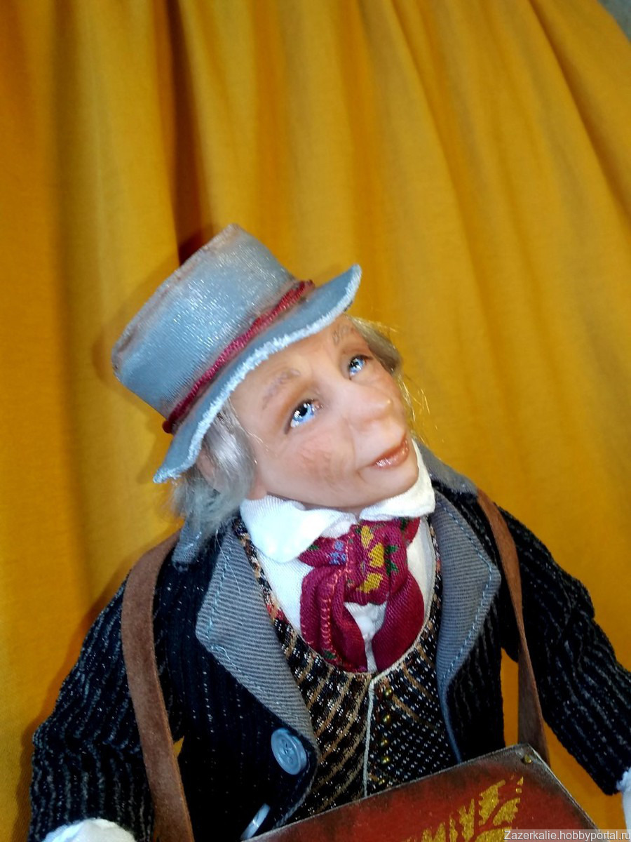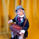 Рост куклы 34 см, высота работы 28 см. Кукла статична, одежда выполнена из натуральных тканей, обувь из натуральной кожи.Волосы- козочка.
