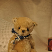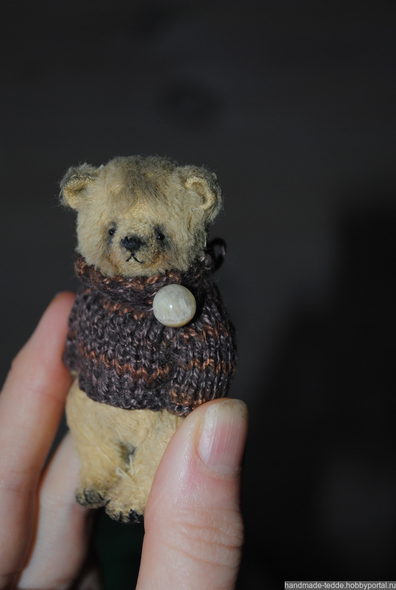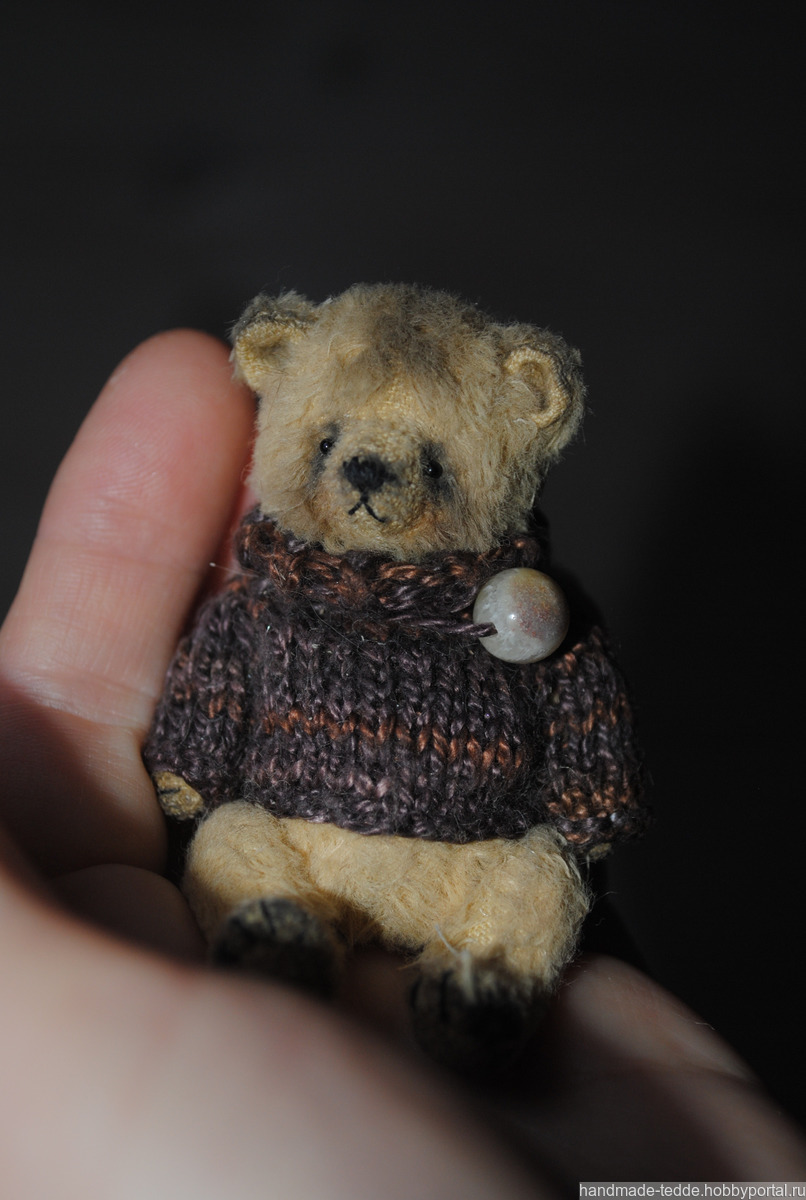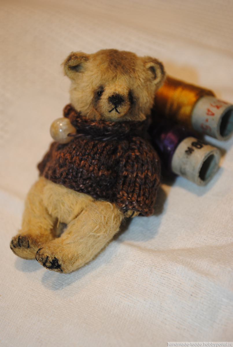 Teddy 7.5 cm Sewed from viscose packed with sawdust, met. granulate, Teddy's paws, his head is getting and nodding