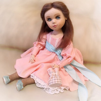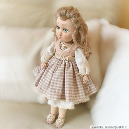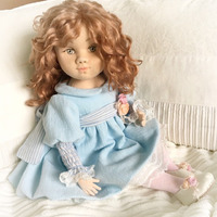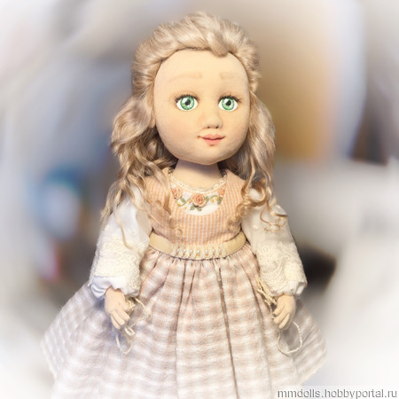 Волосы куклы сделаны из локонов ангорской козы, их можно аккуратно расчесывать и менять прически.