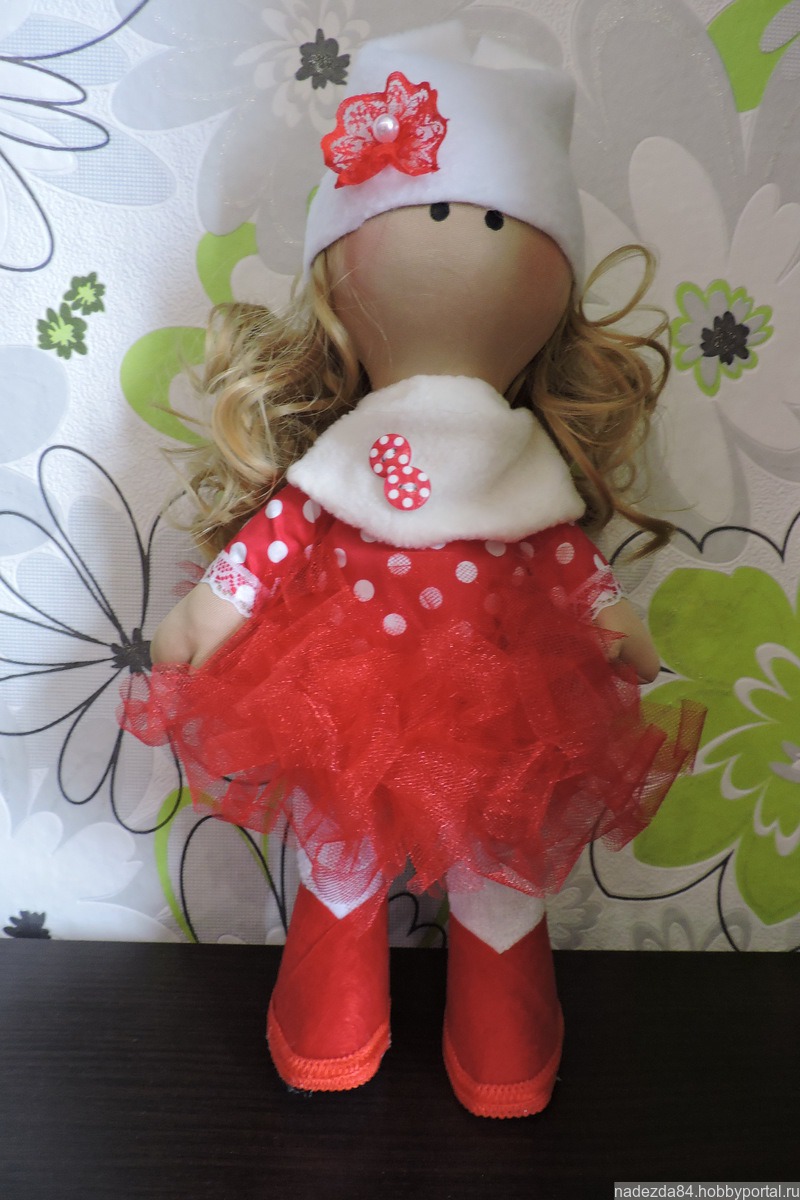 Милая текстильная кукла в красной юбченке из фатина, будет рада найти новый дом и такую же прекрасную очаровательную хозяйку.
