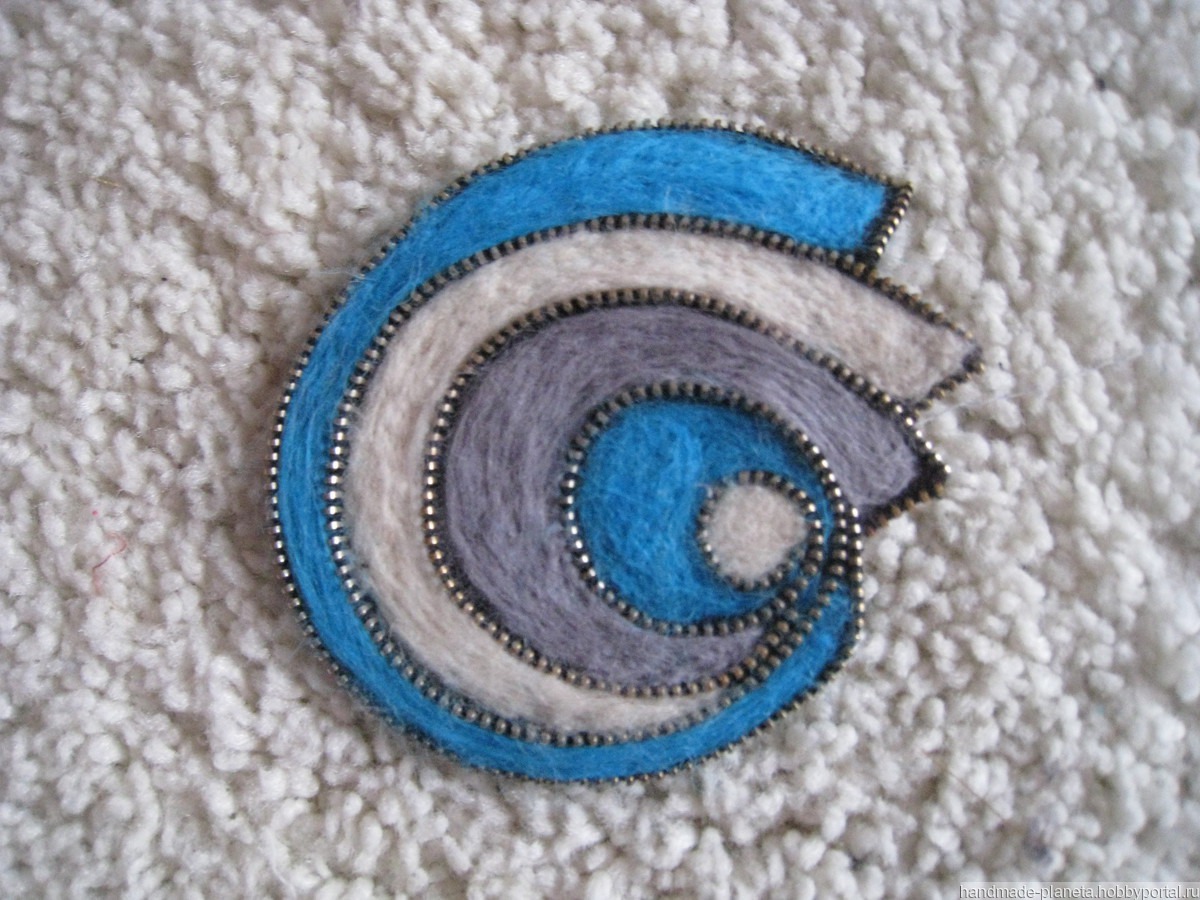 Очень красивая брошь. Выполнена из шерсти для валяния сухим методом. Окантовка: металлические замки. Эта брошь может быть превосходным женским подарком. Она может быть выполнена под тон одежды, а может быть и ярким украшением костюма или платья. Можно сделать разные формы этих брошей. Возможен повтор как в форме так и в цвете. Застёжка с изнаночной стороны. Эта брошь, как аксессуар очень оригинальна и изящна.