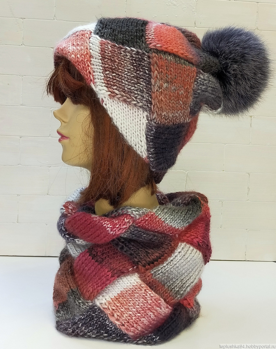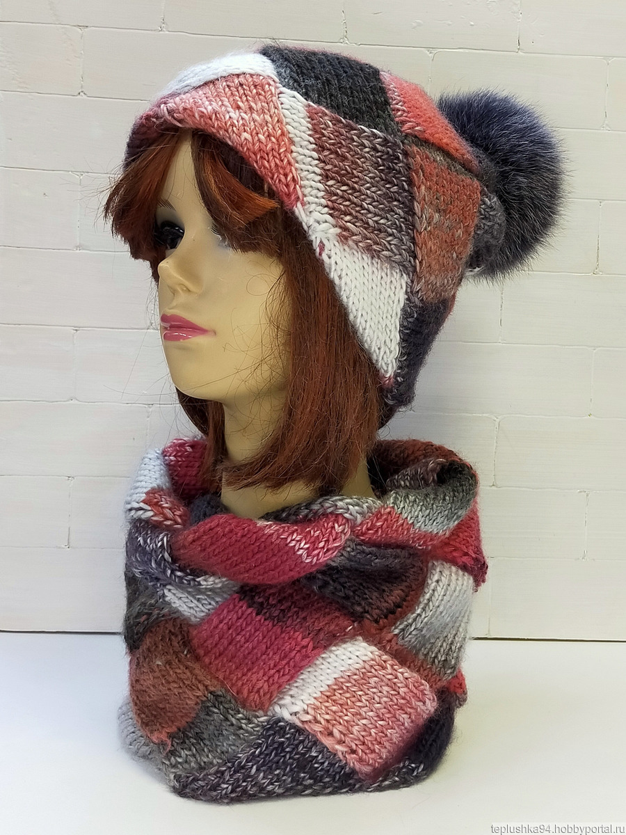 Шапка и снуд связаны спицами из полушерстяной пряжи.Рисунком "Энтерлак". Необычайно легкий и теплый, абсолютно не колется. Шапочка с вязаным подкладом из полушерсти.