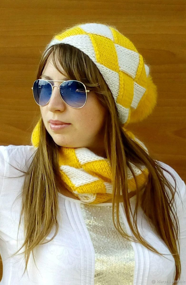 однотонный, комплект, ручная работа, шапка, берет, шапка вязаная, шарф, берет вязаный, берет женский, берет спицами, шапка вязаная женская, шапка на осень, берет теплый, объемный берет, пух норки, берет женский вязаный, берет из пуха норки