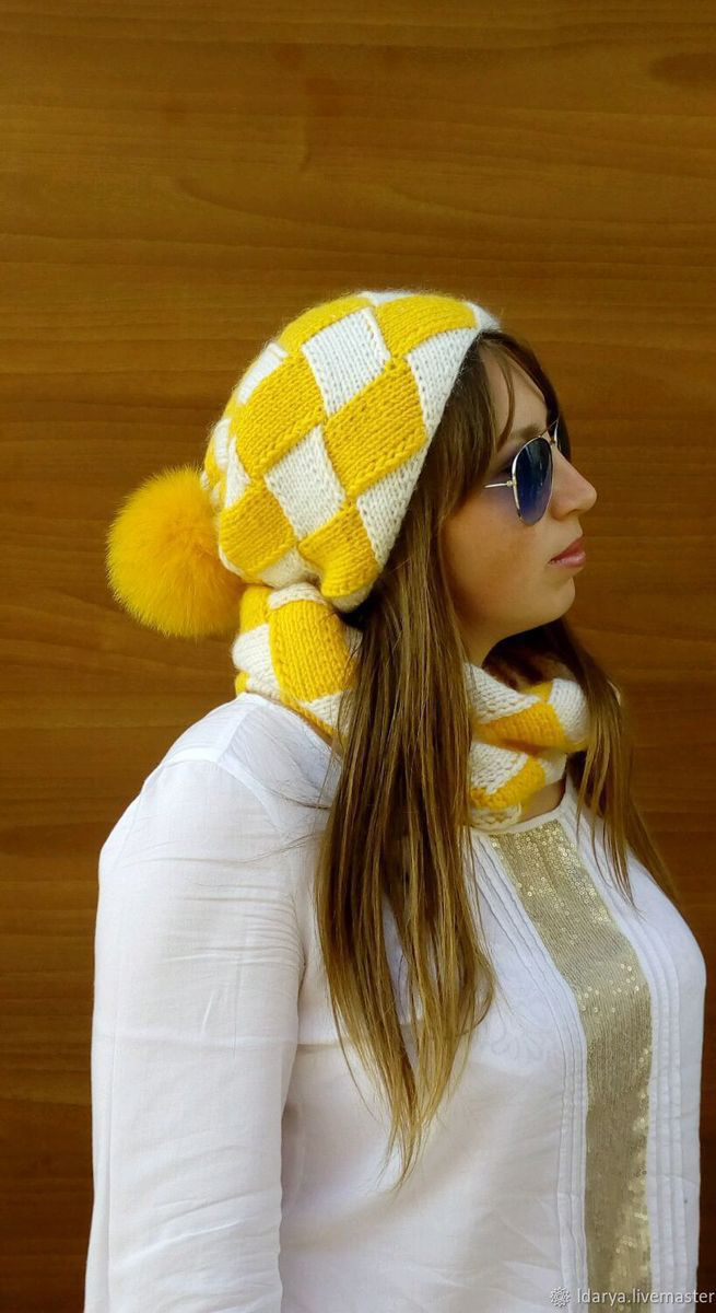 Цена комплекта указана с помпоном. Комплект можно приобрести и без помпона. Стоимость 3500. А также можно заменить на помпон другого цвета.