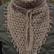 Ажурный бактус из тонкой пряжи - равнобедренный треугольник, длина по верхнему краю без завязок 60 см, высота треугольника - 45 см. Завязки по 45 см.
