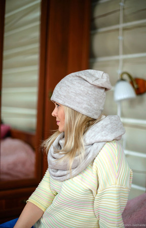 шапка женская, снуд шарф хомут, снуд женский, снуд в два оборота, комплект аксессуаров, шапка на осень, бини шапка вязаная