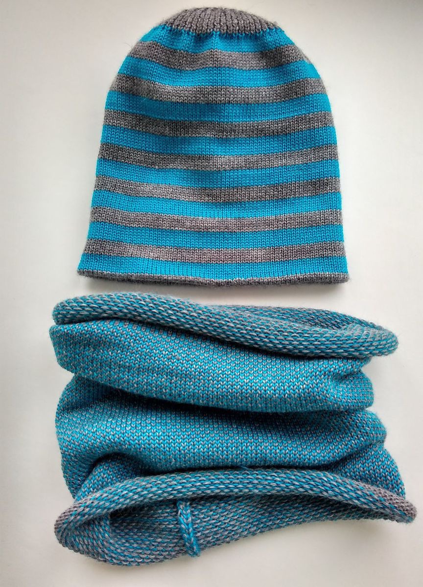Двухцветный снуд выполнен как шарф-труба, удобен под верхнюю одежду. Длина 31 см, диаметр 21 см (растягивается под голову!).