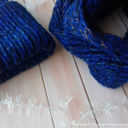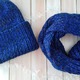 Шапка и снуд в два оборота.Комплект крупной вязки, в нем Вы точно будете на стиле. Нить цвета электрик в сочетании с темно -синим и секционного крашения создают интересный твидовый эффект. Комплект без повторов, в единственном экземпляре.