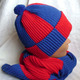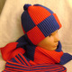 авторская работа, ручная работа, шапка вязаная, шарф, шарф вязаный, подарок мужчине, для мужчин, футбол, болельщик, комбинированный, ручная вязка, ЦСКА, комплект мужской, красно-синий, фанат, болельщик цска