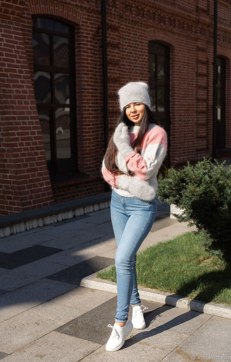 Нежный серый комплект из прекрасной норочки согреет Вас в холодную погоду осенью и в холодный день зимы.