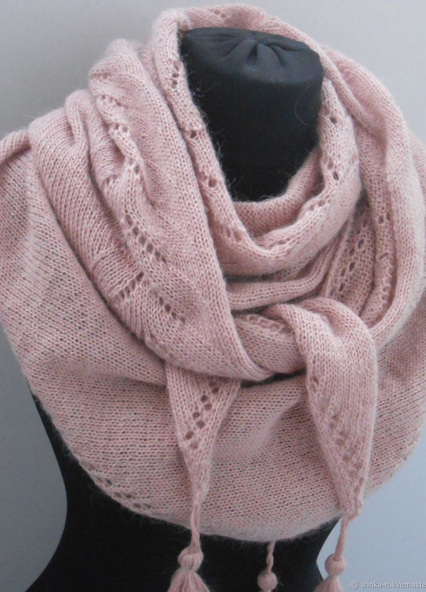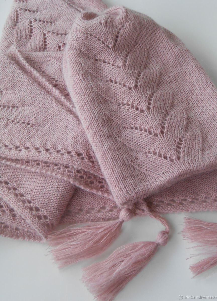 Легкий , но теплый комплект - бактус и шапочка -бини - связан из двух видов пряжи - итальянской полушерсти цвета пыльной розы и турецкого кид-мохера .Ниточки идеально совпадают по тону .