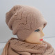 Шапочка в комплекте - двойная , с лаконичный ажурным узором сбоку . Аналогичный узор украшает и косынку по всей длине