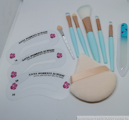 Набор необходимых каждой женщине аксессуаров для макияжа в органайзере с вышивкой, изготовленном в единственном экземпляре. Такого не будет больше ни у кого. В набор входит: кисточки для сухих и влажных тексту- 4 шт, аппликаторы- 2 шт, пуховка- 1 шт, трафареты для бровей- 3 шт, стеклянная пилочка для ногтей- 1 шт. Размер органайзера 15х12,5 см, упакован в подарочную коробку 18х18х3 см с прозрачной крышкой.