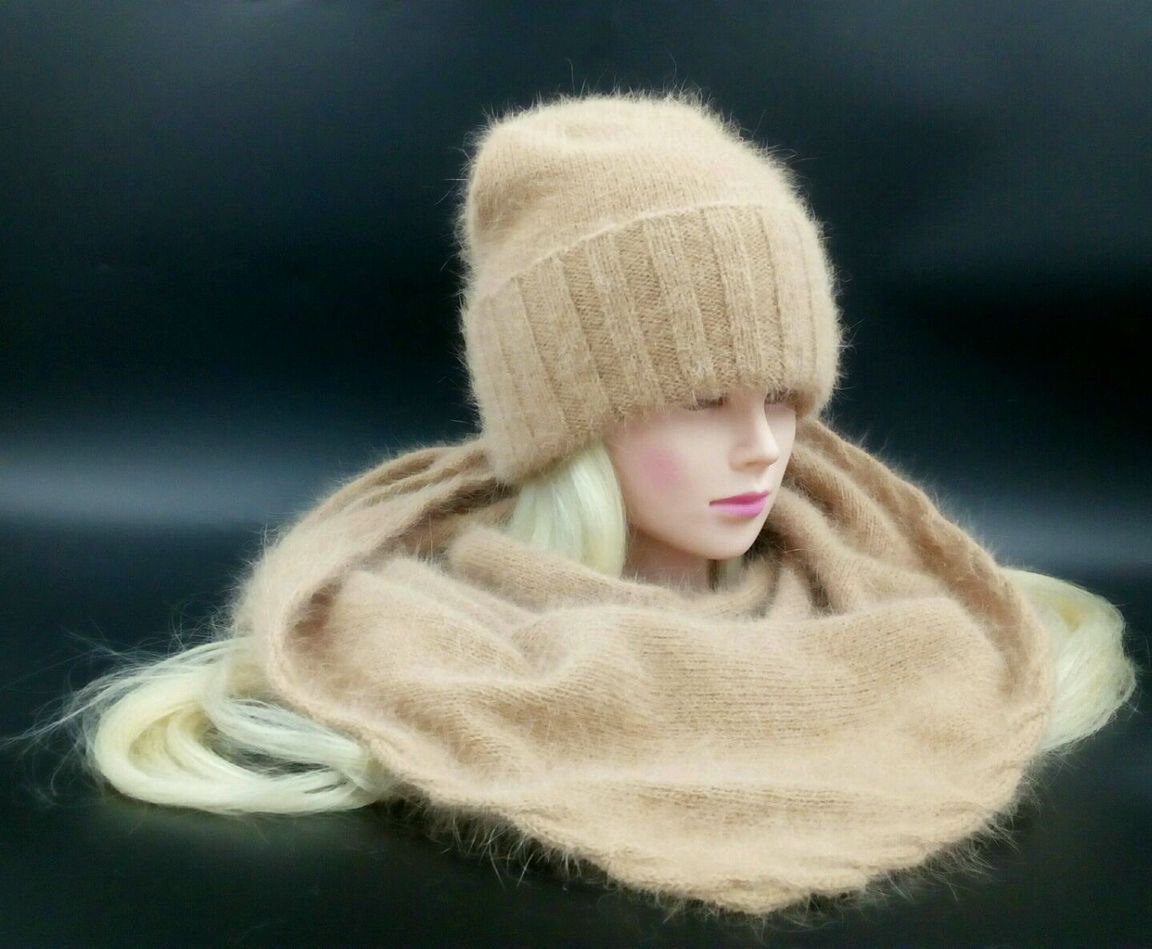 шапка бини, комплект вязаный, бактус вязаный, шапка с отворотом, шапка с бактусом