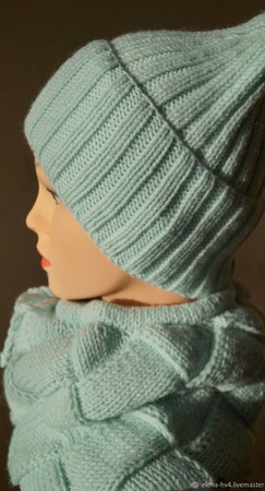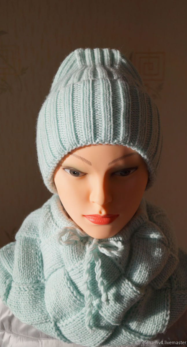 шапка женская, снуд вязаный, шапка бини вязаная, шапка и снуд вязаные, шапка и снуд спицами