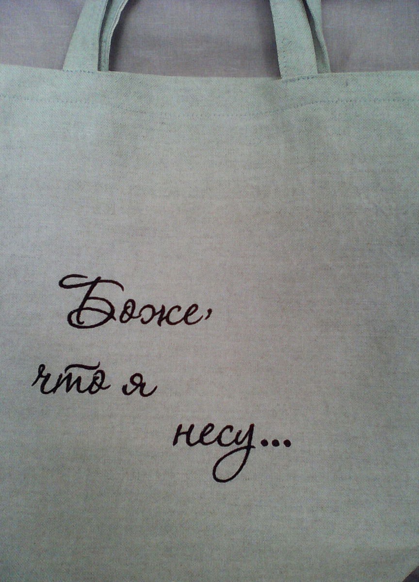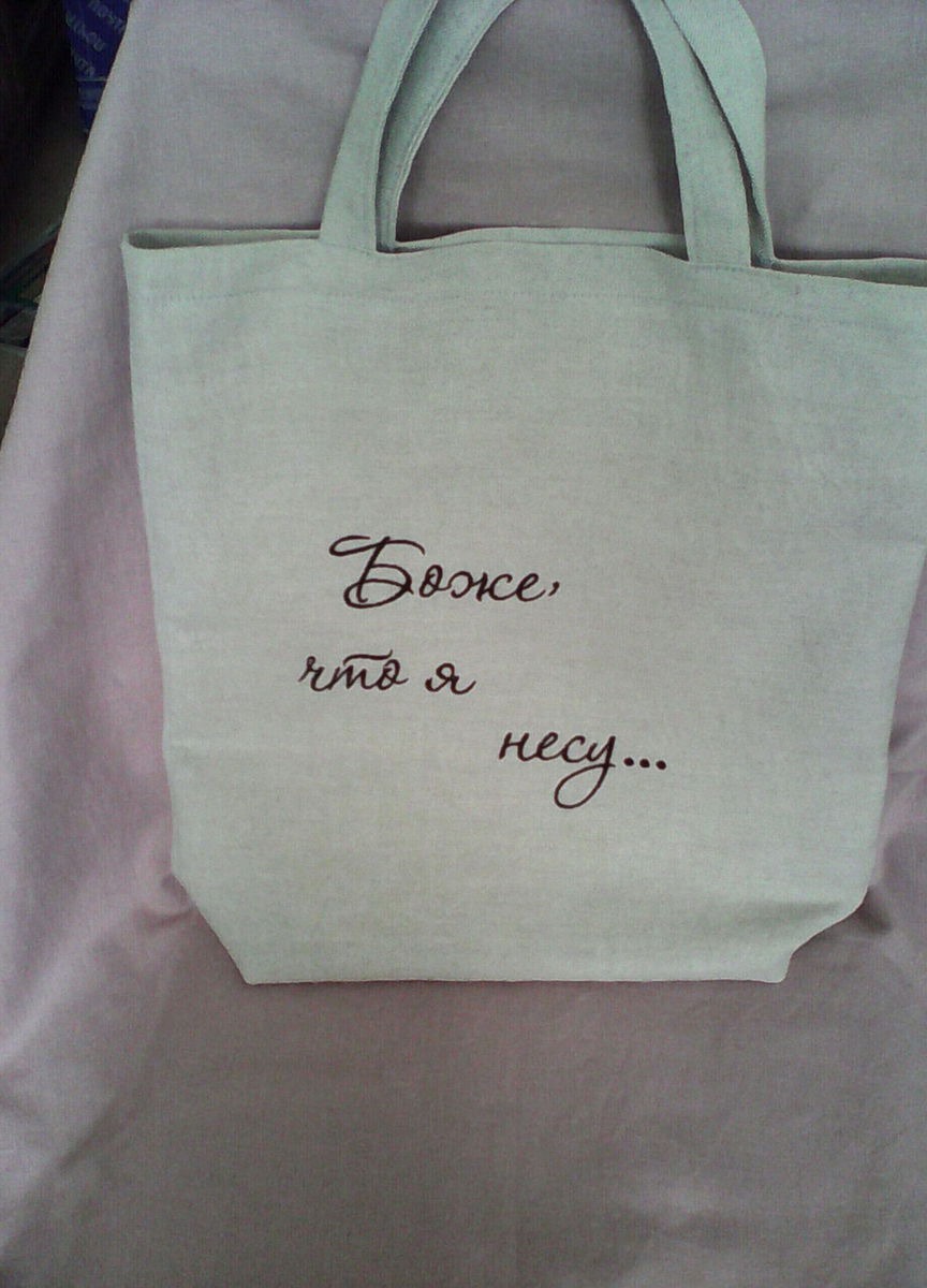 Сумка летняя из льна на подкладке из х/б сатина. Внутри сумки большой карман. Ручки прочные-в четыре сложения. Сумка только из розоватого льна.Думаю, что надпись на сумке понятна каждой женщине...
