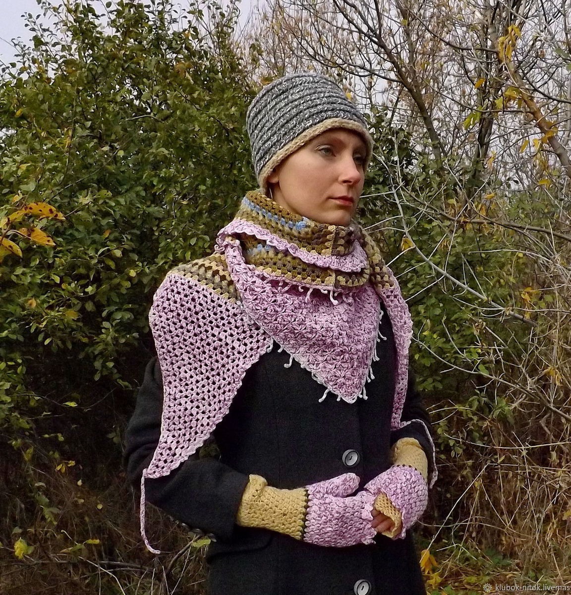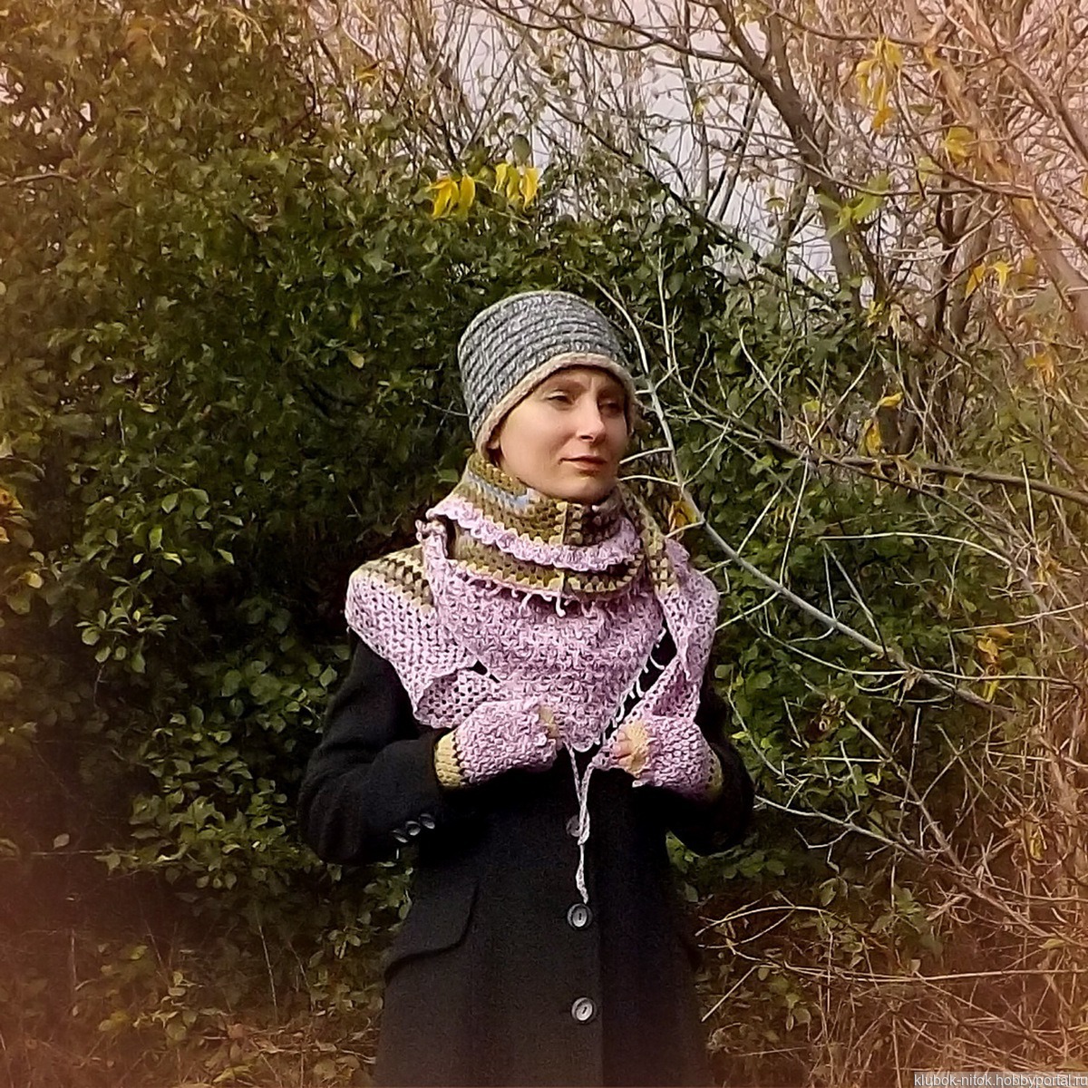 Купить шапку, шаль-воротник и митенки можно по отдельности или комплектом.