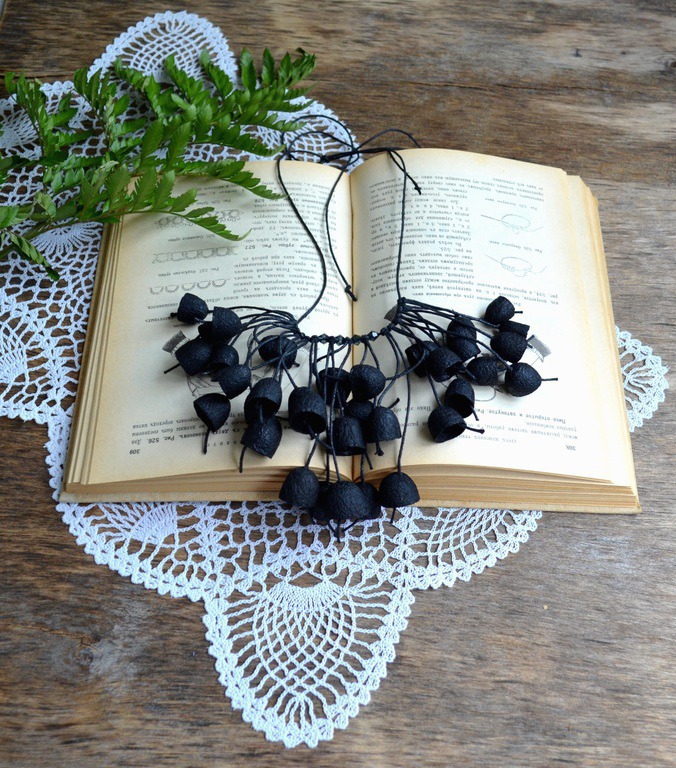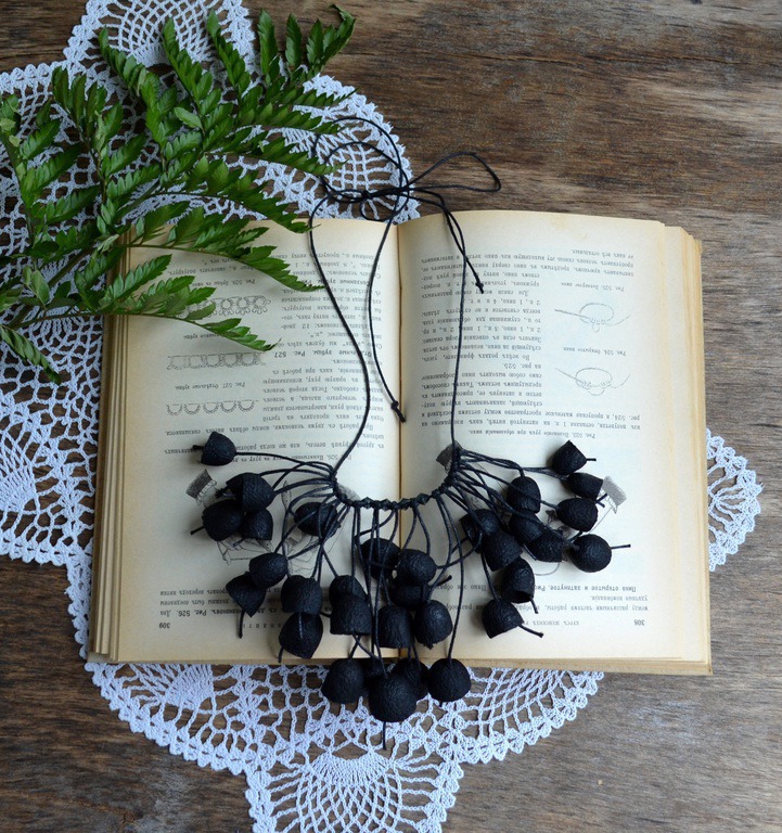 украшение на шею, черное колье, черный, колье ручной работы, колье и серьги, летнее украшение, БОХО украшение, бохо колье, готические украшения, готика, романтичное украшение, летнее колье, готический стиль, легкое колье, романтичное колье, шелковое украшение, колье из коконов, тутовый шелкопряд, колье каскад, черное колье из коконов