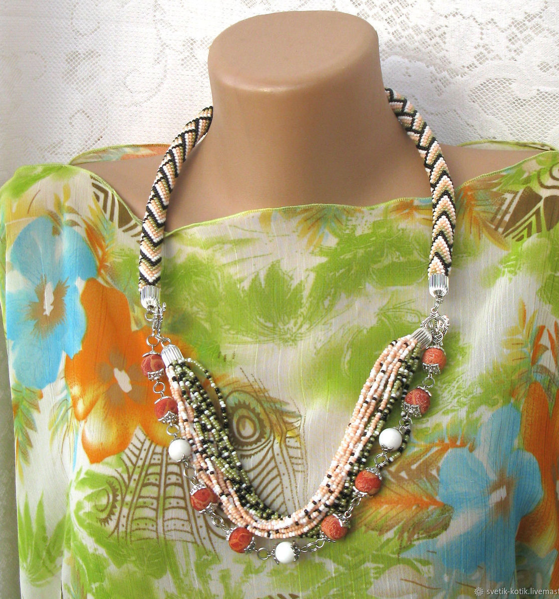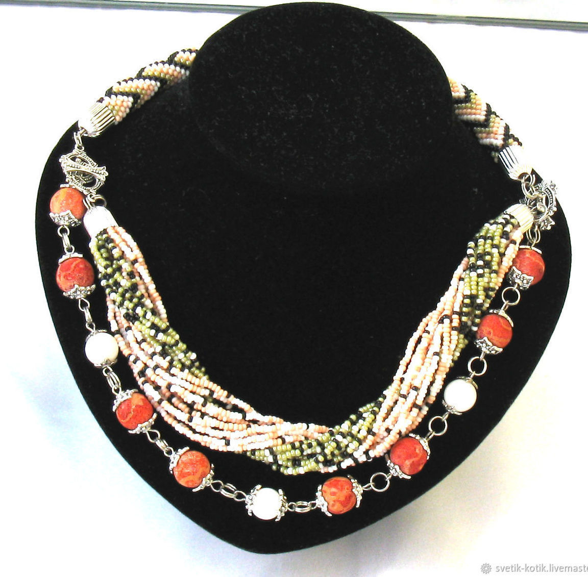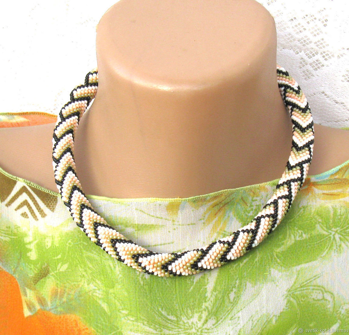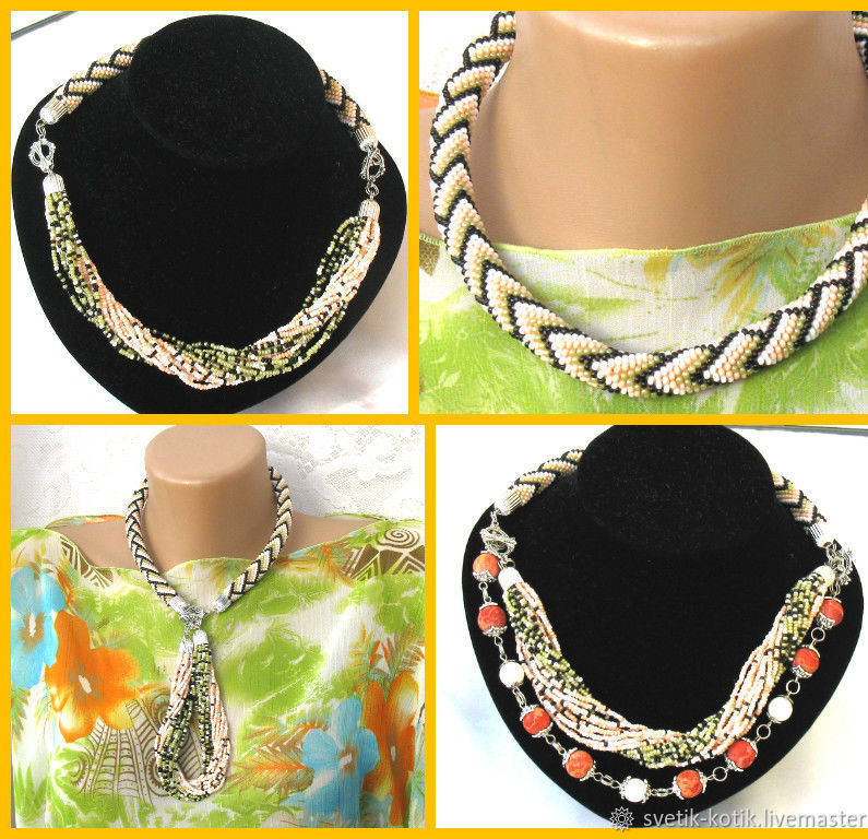 белый, украшение, бежевый, рисунок, лето, подарок, осень, украшение на шею, мода, черный, колье, оливковый, нежность, жгут, трансформер, бисерное колье, бисерный жгут, нежный, микс, геометрия