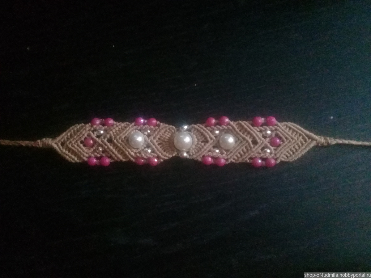 Комплект из браслета и серег в технике макраме из вощеного шнура цвета кофе с молоком
