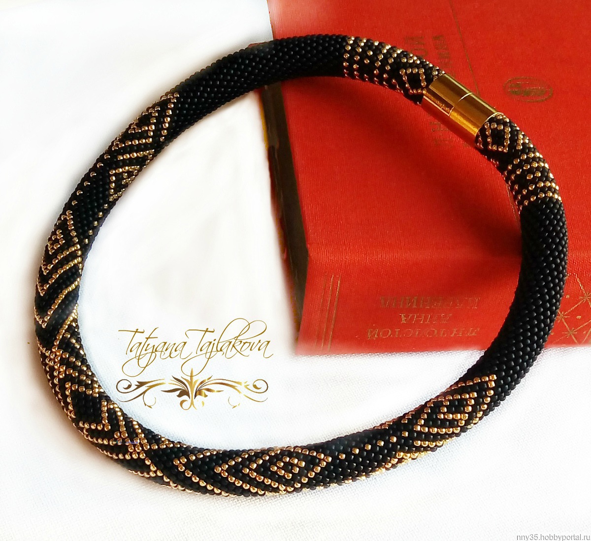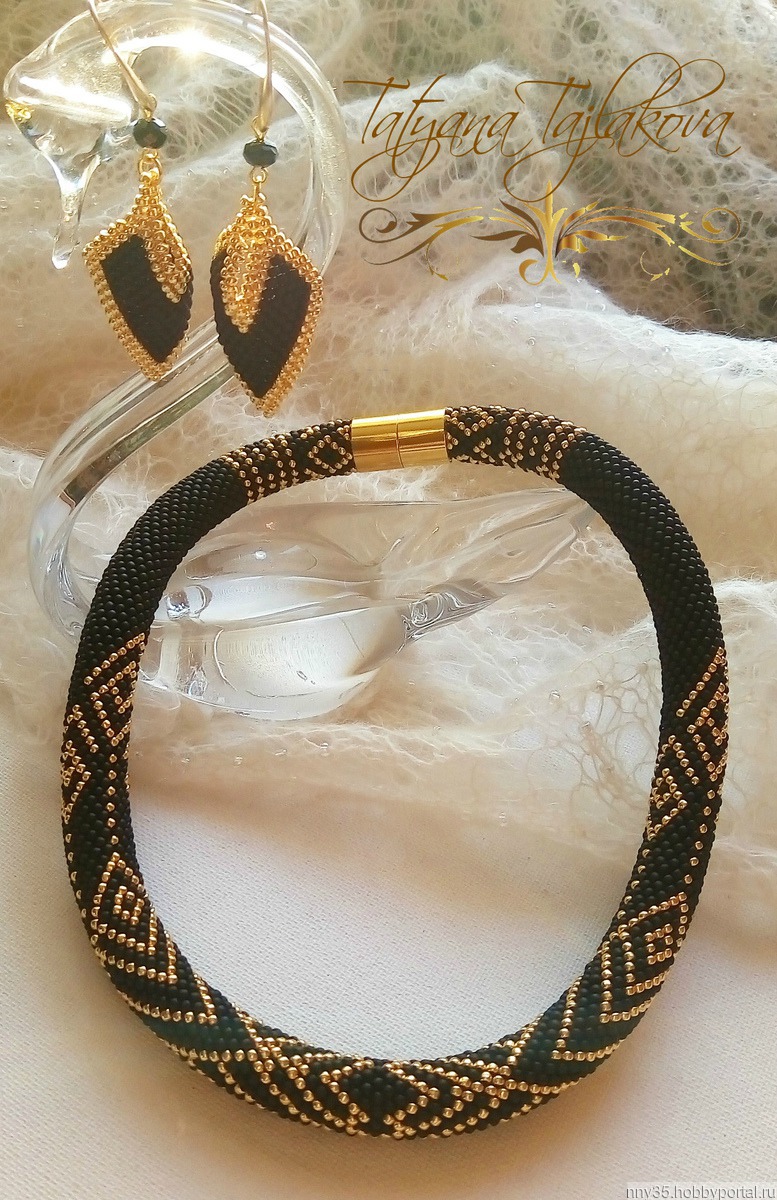 Очень благородное сочетание матового черного и золотого бисера.
