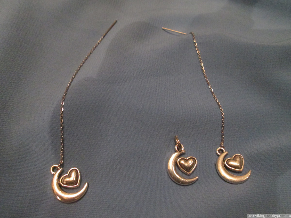 Комплект из серёг и кулона с подвесками в виде лун с сердцами